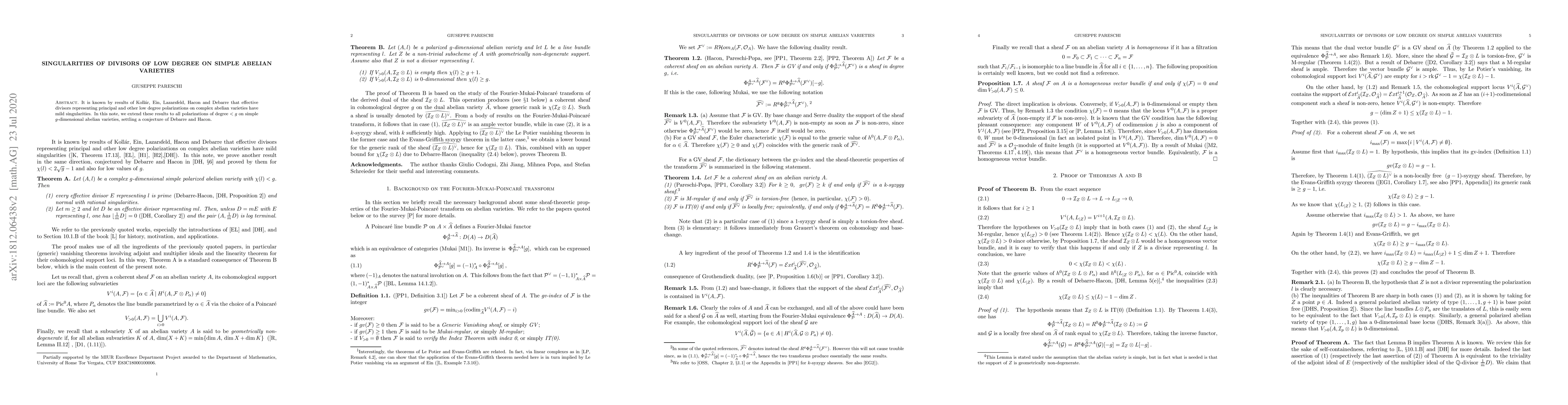 This paper extends existing results on low-degree polarizations on simple abelian varieties, settling a conjecture of Debarre and Hacon, to show that divisors representing such polarizations have mild singularities.