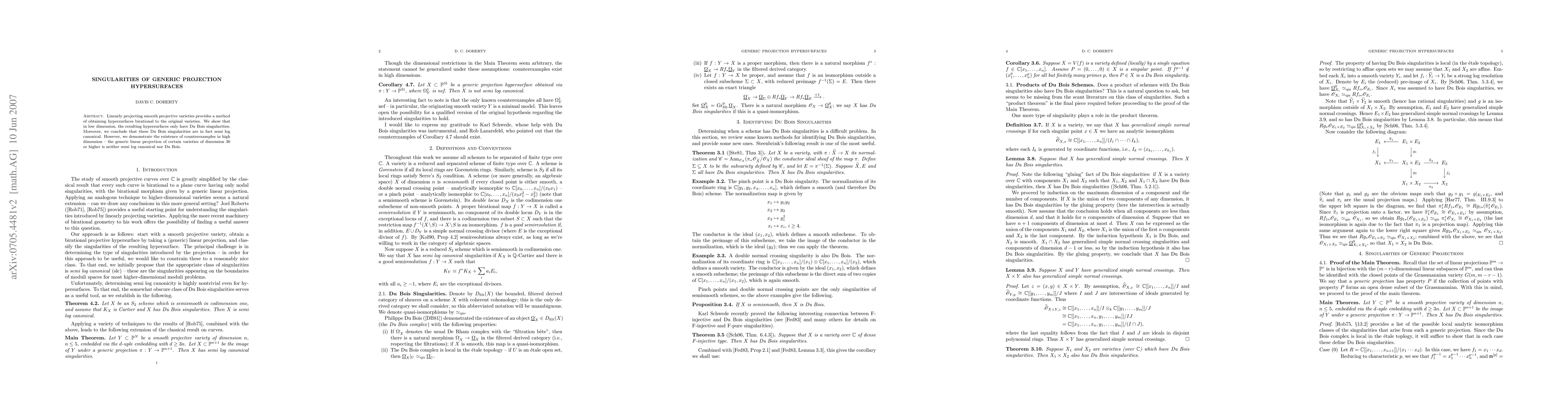 Linear projection of smooth projective varieties creates hypersurfaces with specific singularities in low dimension, but these singularities can become counterexamples to semi log canonicality and Du Bois singularity in high dimensions.