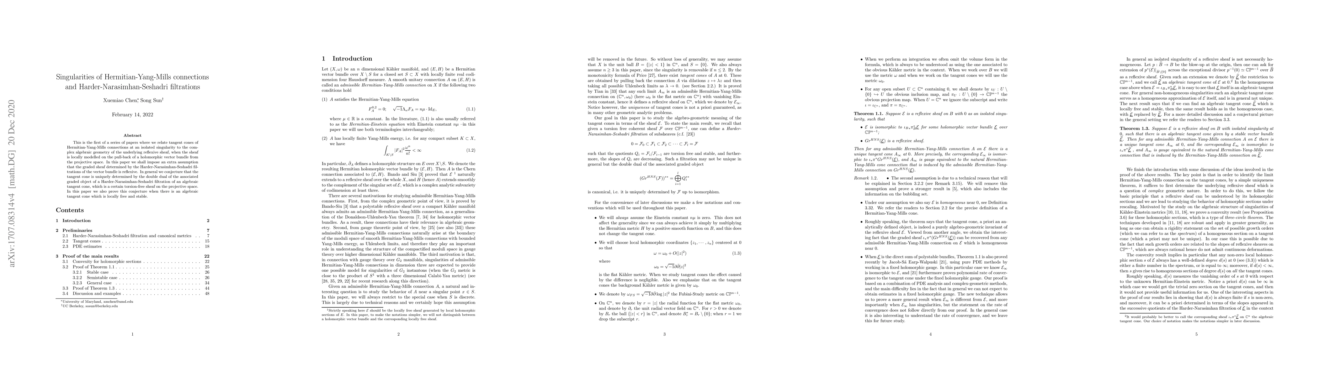 This paper investigates the relationship between singularities of Hermitian-Yang-Mills connections and the Harder-Narasimhan-Seshadri filtrations of reflexive sheaves modeled on holomorphic vector bundles. The authors prove that under certain conditions, the tangent cone at an isolated singularity is uniquely determined by the double dual of the associated graded object of a filtration.