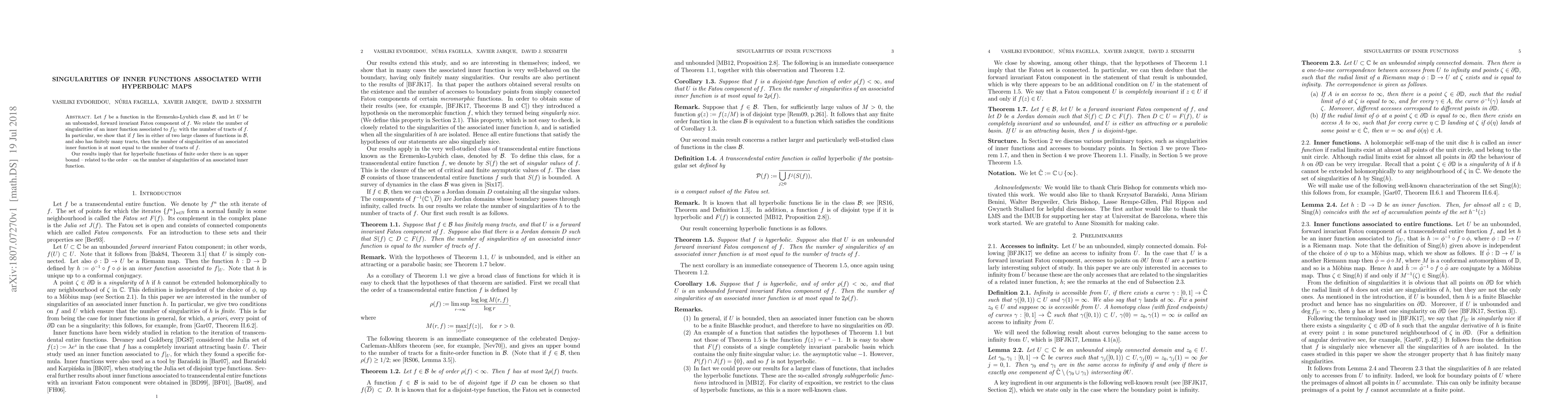 This paper investigates the relationship between the number of singularities of inner functions associated with hyperbolic maps in the Eremenko-Lyubich class and the number of tracts of these maps. It establishes an upper bound for the number of singularities based on the number of tracts, particularly for hyperbolic functions of finite order.