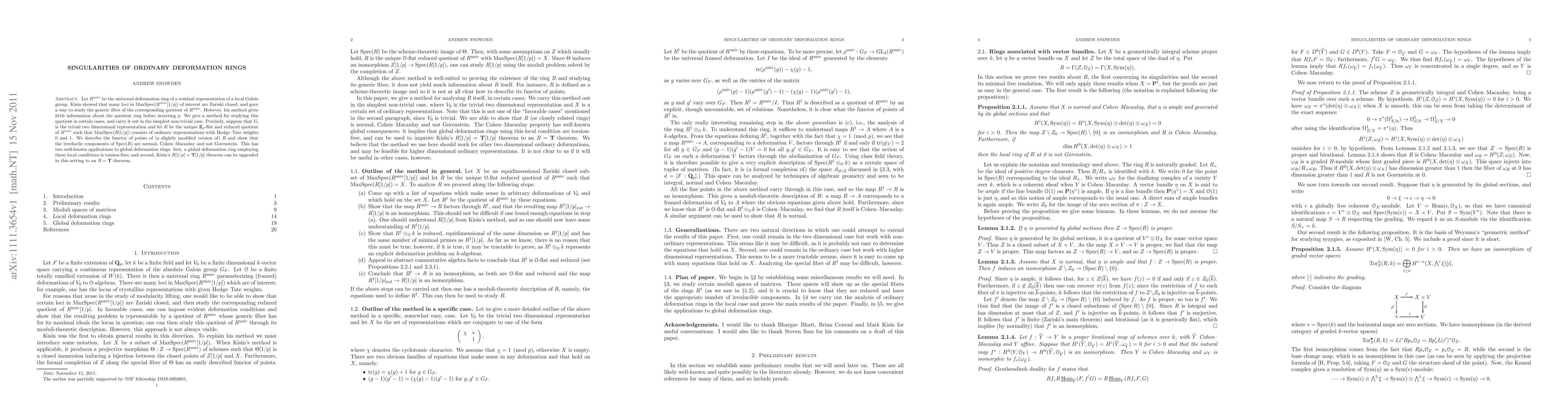 This paper presents a method to study a specific quotient of the universal deformation ring before p-inversion, focusing on the simplest non-trivial case. It describes the functor of points for a modified version of this quotient ring, showing its geometric properties. The findings have implications for global deformation rings, ensuring torsion-freeness and upgrading Kisin's R[1/p]=T[1/p] theorem to an R=T theorem in certain settings.