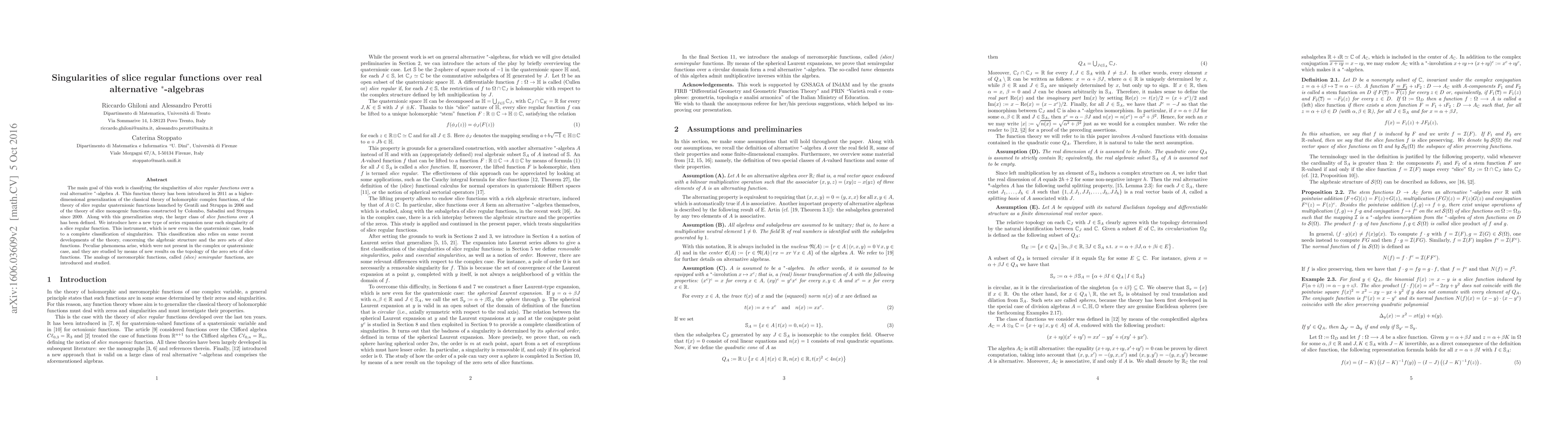 This paper classifies singularities of slice regular functions over real alternative *-algebras, introducing a new series expansion method for singularities. It reveals unique phenomena not seen in complex or quaternionic cases and explores the topology of zero sets, introducing (slice) semiregular functions.