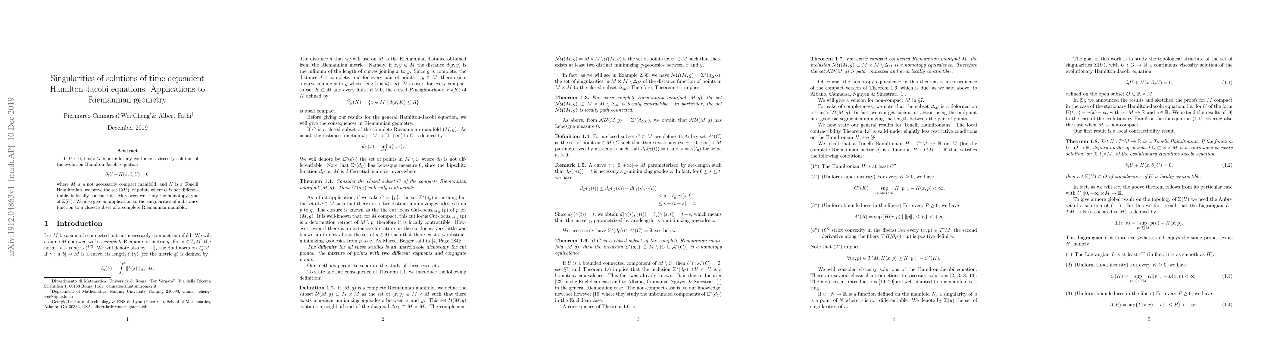 Researchers prove that the set of singular points in solutions to time-dependent Hamilton-Jacobi equations is locally contractible, with implications for Riemannian geometry.