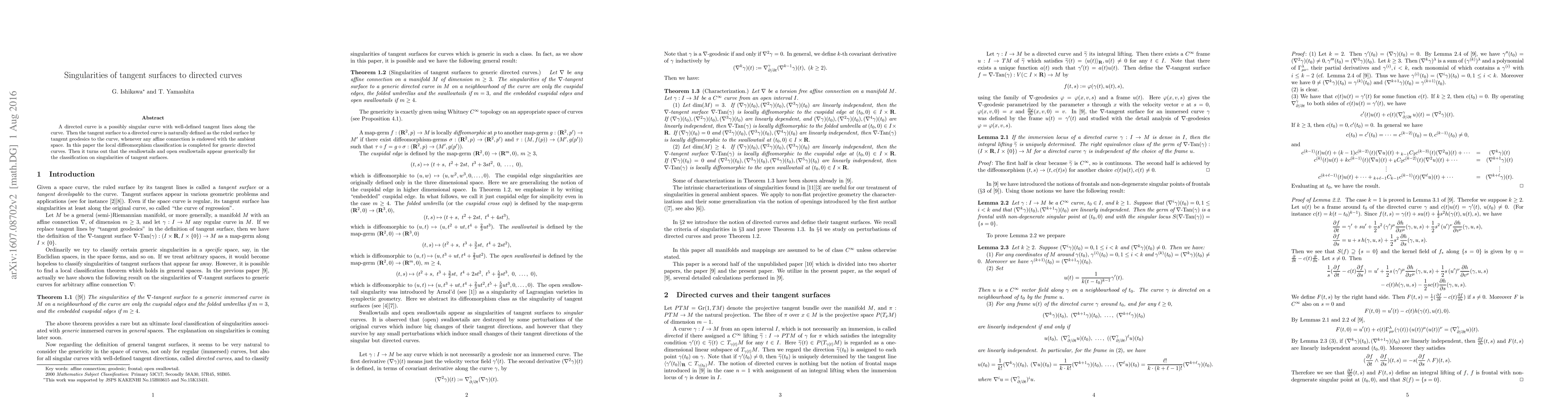 This paper classifies the local diffeomorphisms of tangent surfaces to directed curves, revealing that swallowtails and open swallowtails emerge as generic singularity types for these surfaces.