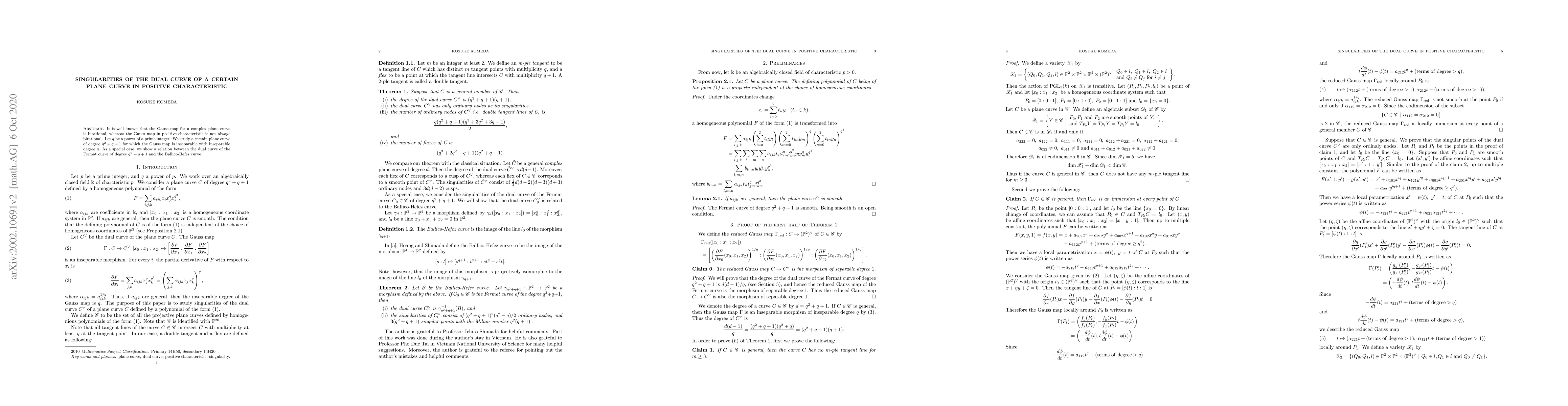 Researchers study a plane curve of degree $q^2+q+1$ in positive characteristic, finding its Gauss map is inseparable with degree $q$, leading to a relation between the dual curve of the Fermat curve and the Ballico-Hefez curve.
