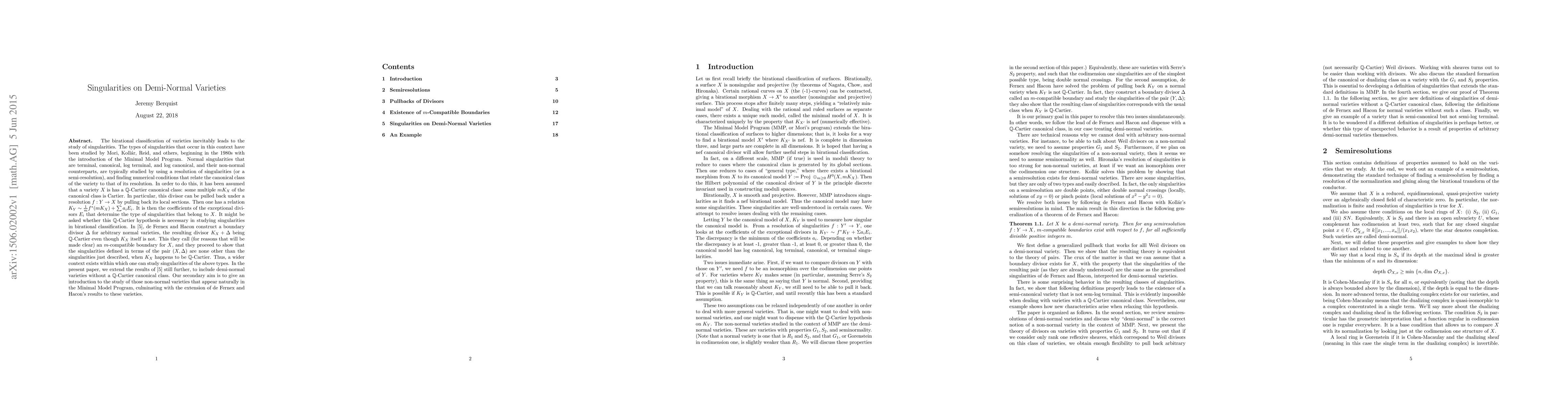 The birational classification of varieties inevitably leads to the study of singularities. The types of singularities that occur in this context have been studied by Mori, Koll\'ar, Reid, and others, beginning in the 1980s with the introduction of the minimal model program. Normal singularities that are terminal, canonical, log terminal, and log canonical, and their non-normal counterparts, are typically studied using a resolution of singularities (or a semiresolution) and finding numerical conditions that relate the canonical class of the variety to that of its resolution. In order to do this, it has been assumed that a variety $X$ has a $\mathbb{Q}$-Cartier canonical class: some multiple $mK_X$ of the canonical class is Cartier. In particular, this divisor can be pulled back under a resolution $f: Y \rightarrow X$ by pulling back its local sections. Then one has a relation $K_Y \sim \frac{1}{m}f^*(mK_X) + \sum a_iE_i$. It is then the coefficients of the exceptional divisors $E_i$ that determine the type of singularities that belong to $X$. It might be asked whether this $\mathbb{Q}$-Cartier hypothesis is necessary in studying singularities in birational classification. In \cite{dFH09}, de Fernex and Hacon construct a boundary divisor $\Delta$ for arbitrary normal varieties, the resulting divisor $K_X + \Delta$ being $\mathbb{Q}$-Cartier even though $K_X$ itself is not. This they call (for reasons that will be made clear) an $m$-compatible boundary for $X$, and they proceed to show that the singularities defined in terms of the pair $(X, \Delta)$ are none other than the singularities just described, when $K_X$ happens to be $\mathbb{Q}$-Cartier. In the present paper, we extend the results of \cite{dFH09} still further, to include demi-normal varieties without a $\mathbb{Q}$-Cartier canonical class.