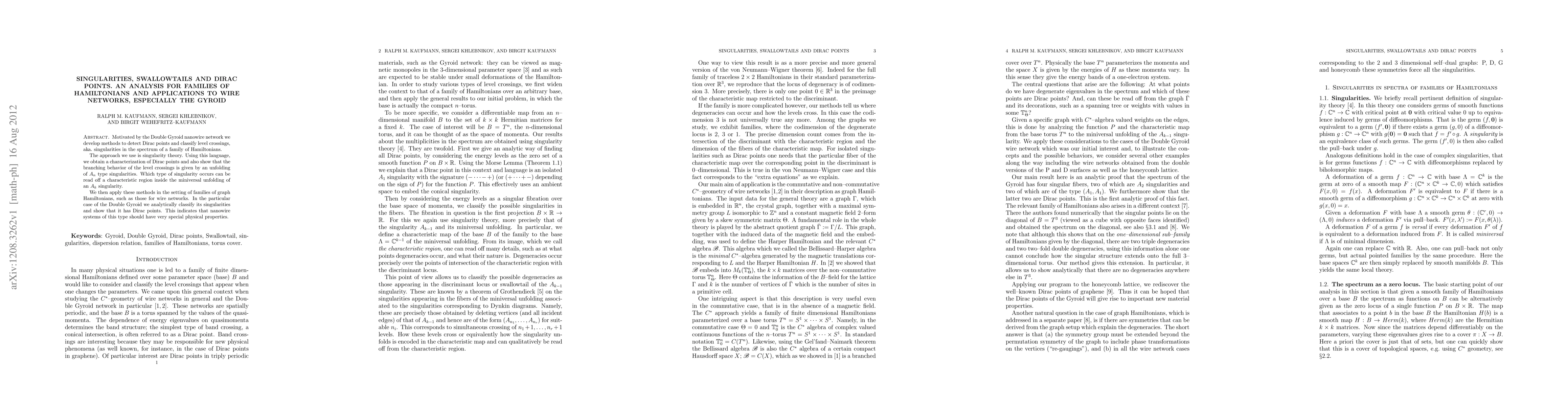 This paper develops methods to detect and classify Dirac points and singularities in the spectrum of Hamiltonian families using singularity theory. It applies these methods to graph Hamiltonians, particularly the Double Gyroid nanowire network, revealing its Dirac points and classifying its singularities.