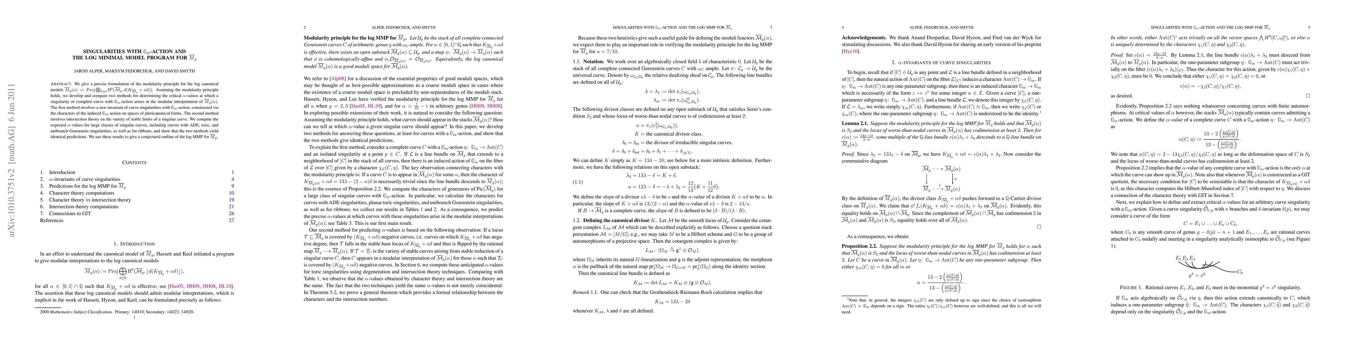 We give a precise formulation of the modularity principle for the log canonical models of $\bar{M}_g$. Assuming the modularity principle holds, we develop and compare two methods for determining the critical alpha-values at which a singularity or complete curve with G_m-action arises in the modular interpretations of log canonical models of $\bar{M}_g$. The first method involves a new invariant of curve singularities with G_m-action, constructed via the characters of the induced G_m-action on spaces of pluricanonical forms. The second method involves intersection theory on the variety of stable limits of a singular curve. We compute the expected alpha-values for large classes of singular curves, including curves with ADE, toric, and monomial unibranch Gorenstein singularities, as well as for ribbons, and show that the two methods yield identical predictions. We use these results to give a conjectural outline of the log MMP for $\bar{M}_g$.
