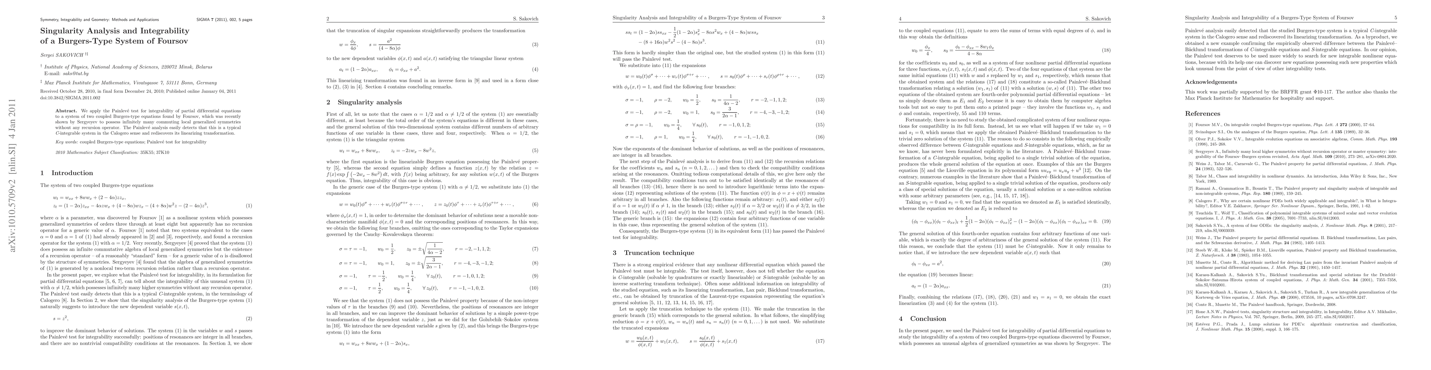 This paper applies the Painlevé test to a system of two coupled Burgers-type equations proposed by Foursov, confirming its integrability in the C-integrable sense and rediscovering its linearizing transformation, despite the absence of a recursion operator.