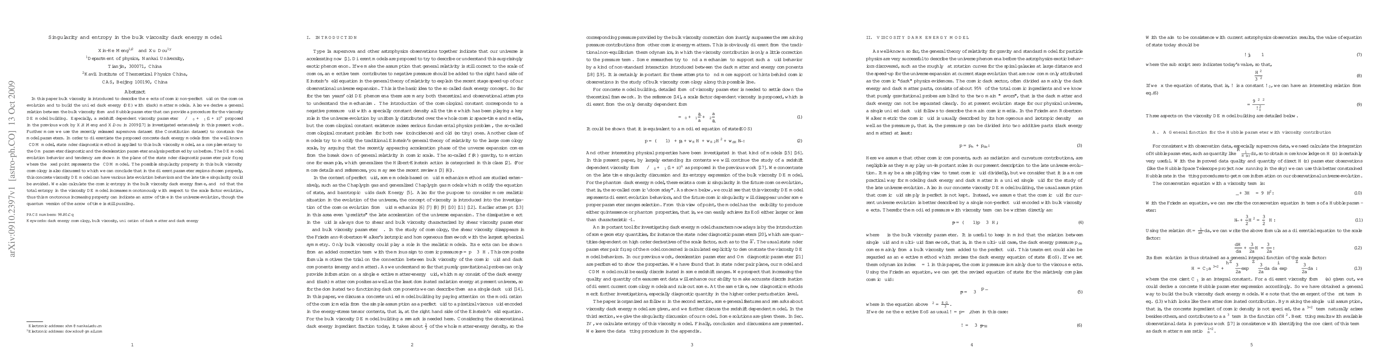 This paper introduces bulk viscosity to model cosmic non-perfect fluid effects and constructs a unified dark energy model. It investigates a redshift-dependent viscosity parameter and uses a supernova dataset to constrain parameters, applying statefinder diagnostics to differentiate it from the $\Lambda$CDM model. The study finds that the model can avoid late-time singularities and shows that cosmic entropy increases monotonically, indicating an arrow of time.
