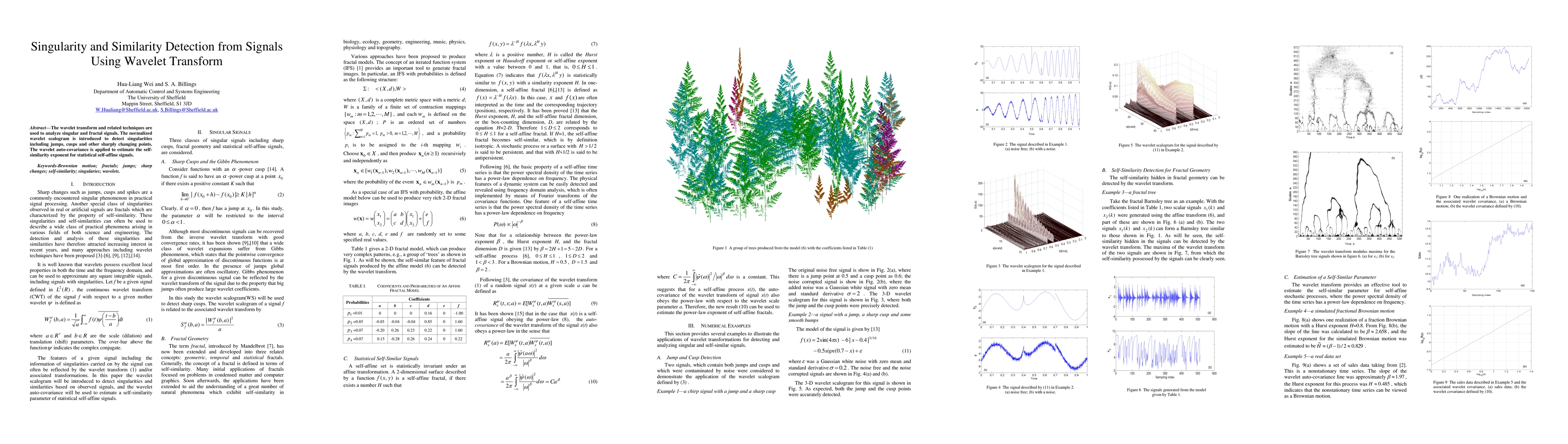 The wavelet transform and related techniques are used to analyze singular and fractal signals. The normalized wavelet scalogram is introduced to detect singularities including jumps, cusps and other sharply changing points. The wavelet auto-covariance is applied to estimate the self-similarity exponent for statistical self-affine signals.