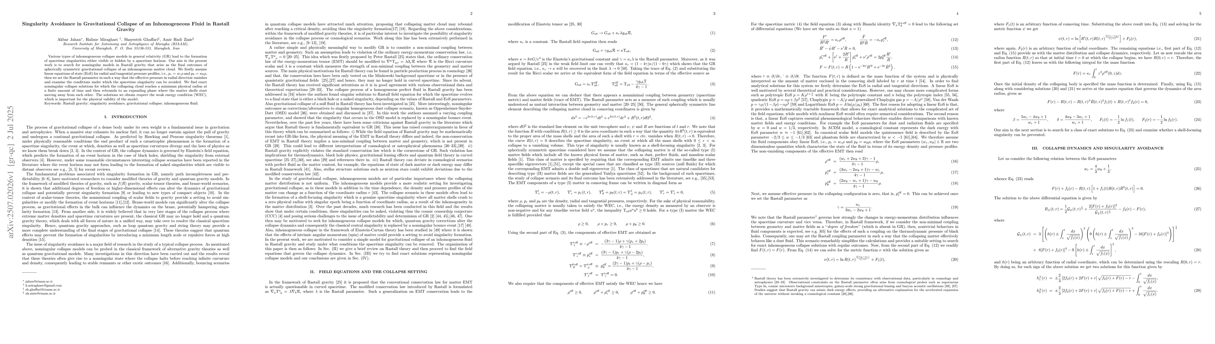 Various types of inhomogeneous collapse models in general relativity (GR) lead to the formation of spacetime singularities either visible or hidden by a spacetime horizon. Our aim in the present work is to search for nonsingular models in Rastall gravity that arise as the final outcomes of spherically symmetric gravitational collapse of an inhomogeneous matter cloud. We firstly assume linear equations of state (EoS) for radial and tangential pressure profiles, i.e., $p_r=w_r\rho$ and $p_\theta=w_\theta\rho$, then we set the Rastall parameter in such a way that the effective pressure in radial direction vanishes and examine the conditions under which the spacetime singularity can be avoided. We find exact nonsingular collapse solutions for which the collapsing cloud reaches a minimum physical radius at a finite amount of time and then rebounds to an expanding phase where the matter shells start moving away from each other. The solutions we obtain respect the weak energy condition (WEC), which is important for the physical validity of the model.