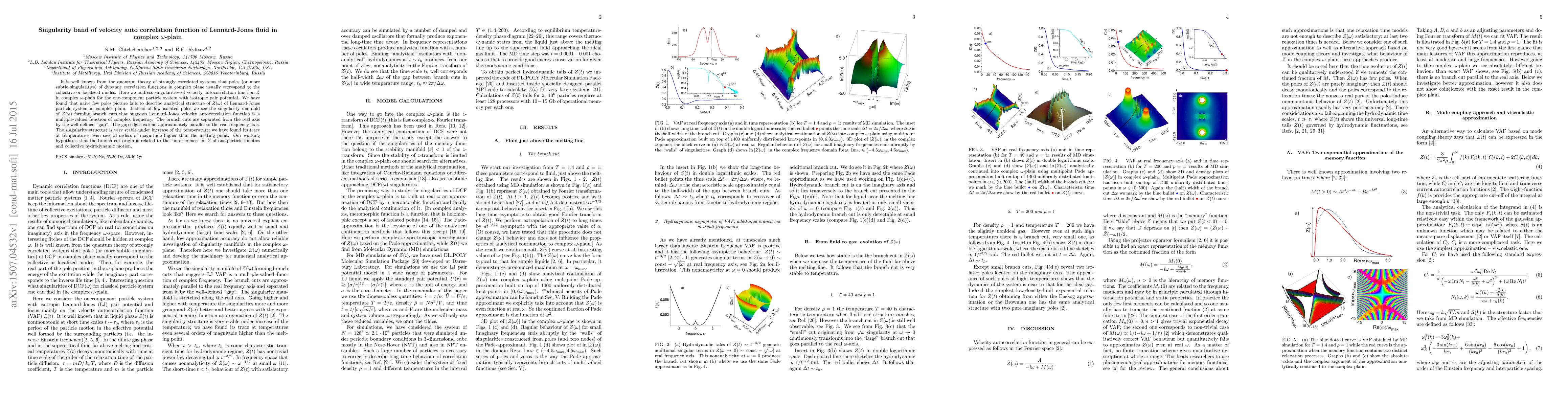 This paper investigates the singularities of the velocity autocorrelation function in a Lennard-Jones fluid within the complex frequency plane, revealing a manifold of branch cuts instead of isolated poles, indicating a multiple-valued function. The stable singularity structure persists at high temperatures, suggesting an interference between one-particle kinetics and collective motion.