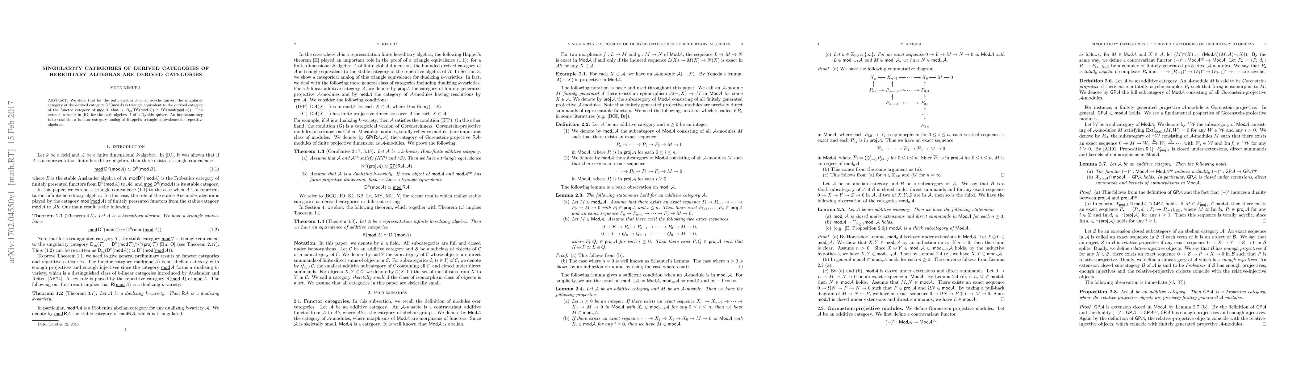 The study shows that for an acyclic quiver's path algebra, the singularity category of its derived category is triangle equivalent to the derived category of the functor category of its module category.