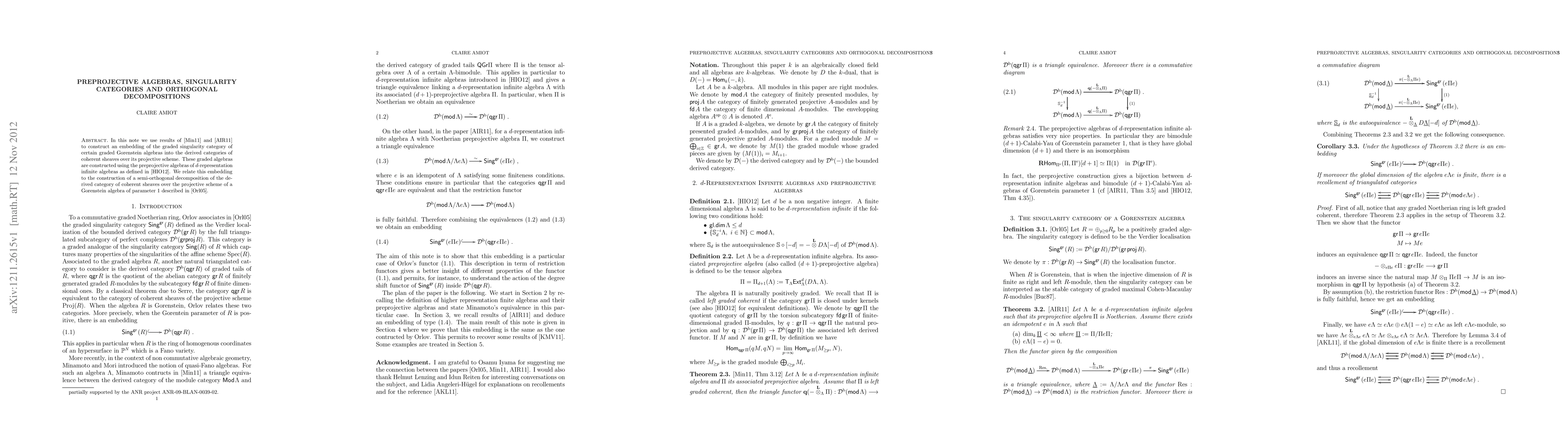 This paper constructs an embedding of the singularity category of certain graded Gorenstein algebras into derived categories of coherent sheaves, using preprojective algebras of $d$-representation infinite algebras. It relates this embedding to a semi-orthogonal decomposition in Orlov's derived category construction.