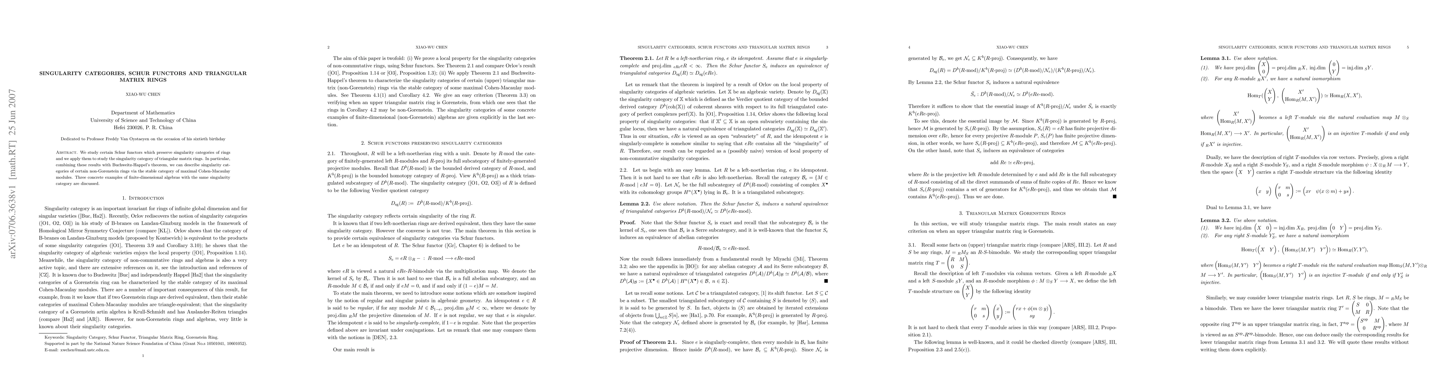 This paper investigates Schur functors that maintain the singularity categories of rings, applying these to triangular matrix rings. It leverages Buchweitz-Happel's theorem to characterize the singularity category of non-Gorenstein rings through the stable category of maximal Cohen-Macaulay modules, and presents three specific examples of finite-dimensional algebras sharing the same singularity category.