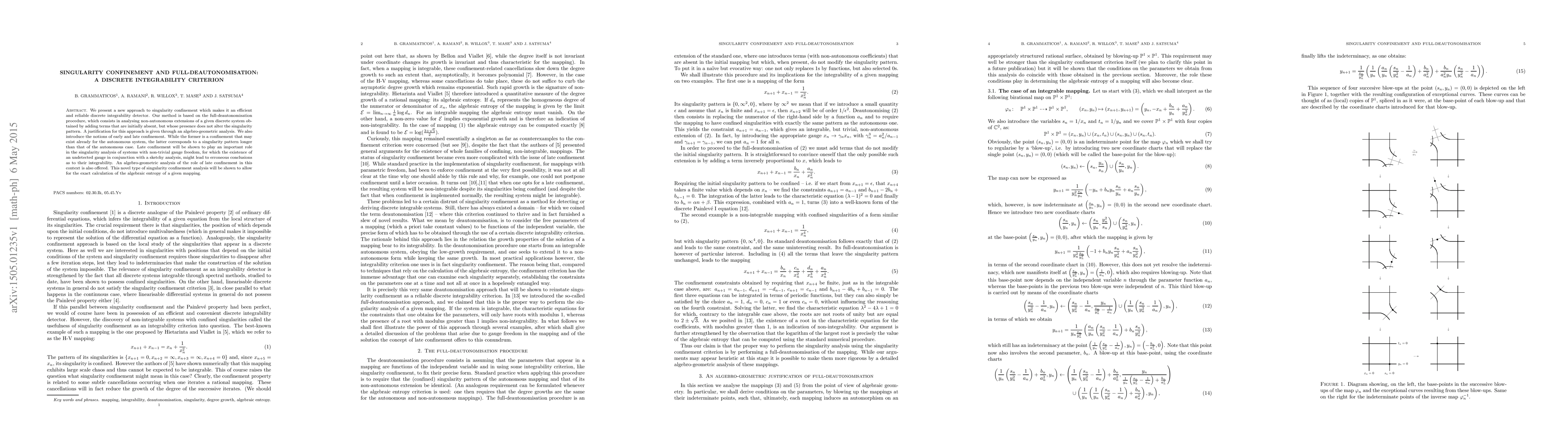 This paper introduces a new method for detecting discrete integrability based on singularity confinement through full-deautonomisation, revealing early and late confinement patterns. It uses algebro-geometric analysis to justify the method and demonstrates its utility in accurately calculating algebraic entropy.