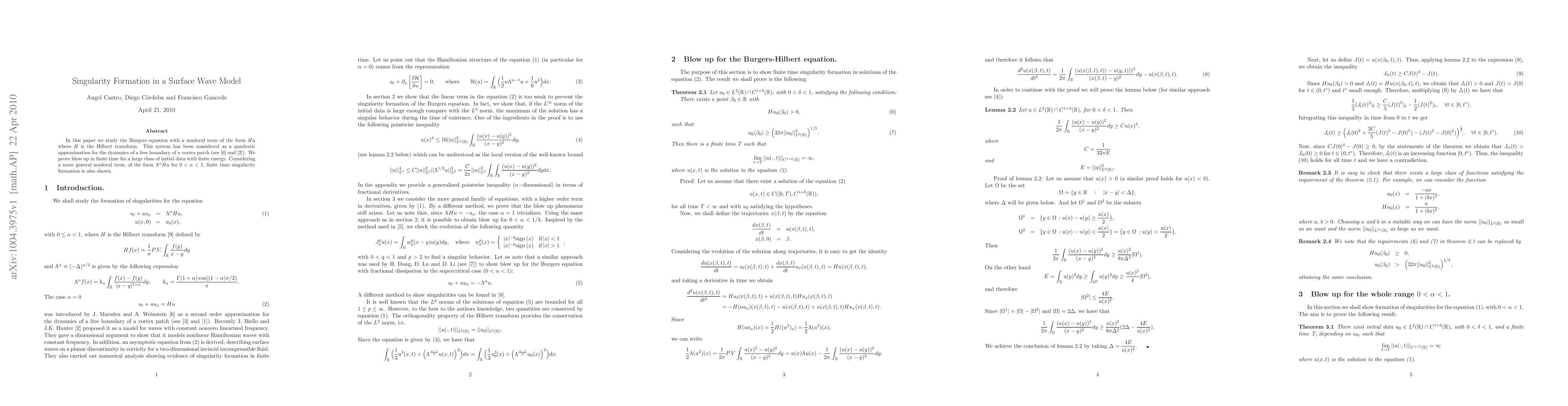 In this paper we study the Burgers equation with a nonlocal term of the form $Hu$ where $H$ is the Hilbert transform. This system has been considered as a quadratic approximation for the dynamics of a free boundary of a vortex patch. We prove blow up in finite time for a large class of initial data with finite energy. Considering a more general nonlocal term, of the form $\Lambda^\alpha Hu$ for $0<\alpha< 1$, finite time singularity formation is also shown.