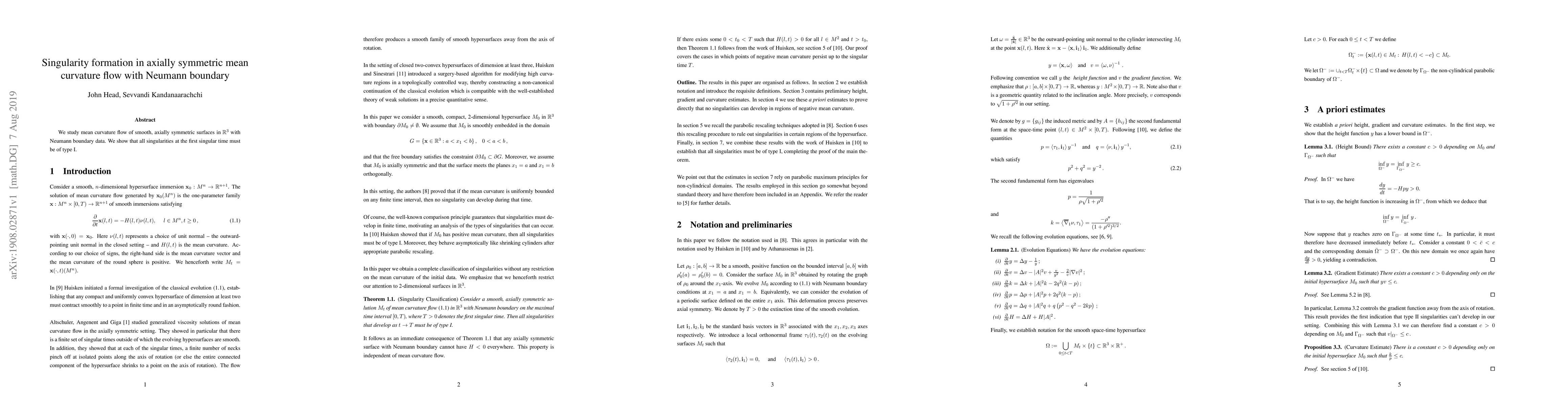 Summary: This paper investigates the mean curvature flow of axially symmetric surfaces in $\mathbb{R}^3$ with Neumann boundary conditions, proving that the first singularities encountered are of type I.