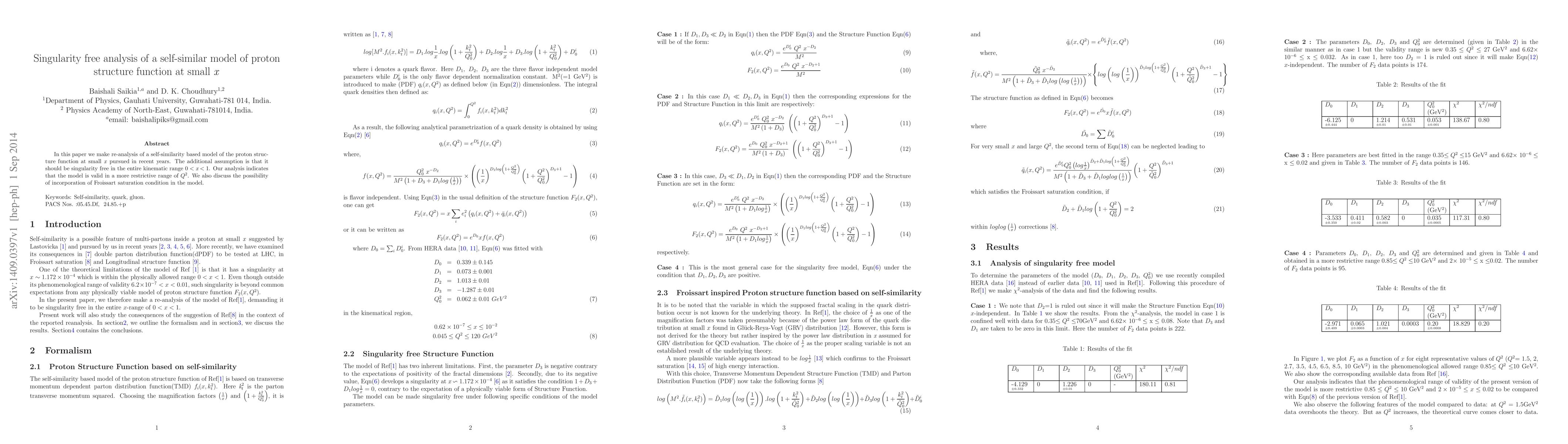 In this paper we make re-analysis of a self-similarity based model of the proton structure function at small \textit{x} pursued in recent years. The additional assumption is that it should be singularity free in the entire kinematic range $0<\textit{x}<1$. Our analysis indicates that the model is valid in a more restrictive range of $Q^{2}$. We also discuss the possibility of incorporation of Froissart saturation condition in the model.