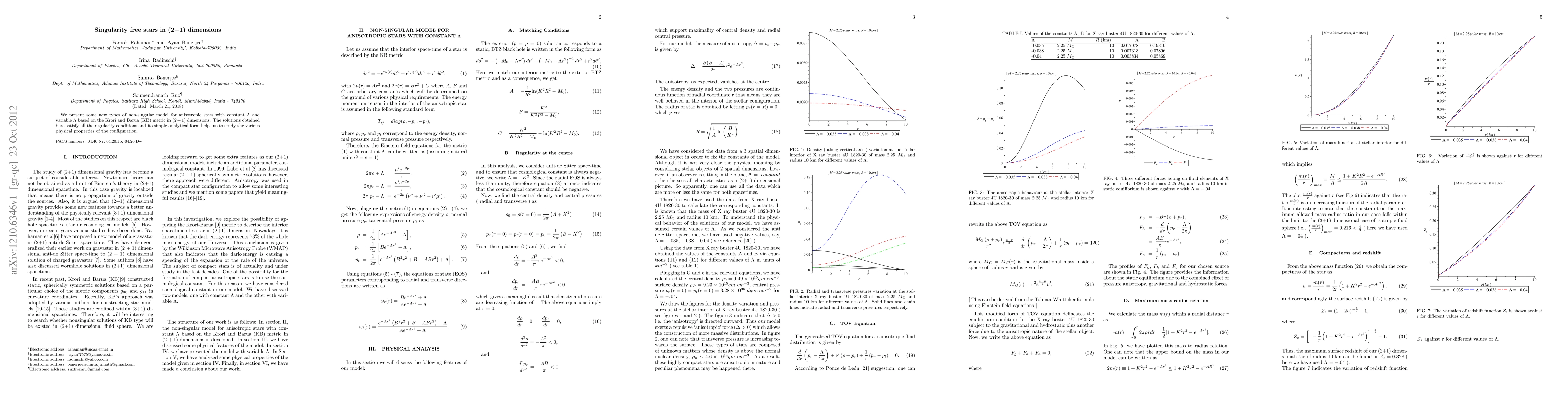 We present some new types of non-singular model for anisotropic stars with constant $\Lambda $ and variable $\Lambda$ based on the Krori and Barua (KB) metric in $(2+1)$ dimensions. The solutions obtained here satisfy all the regularity conditions and its simple analytical form helps us to study the various physical properties of the configuration.