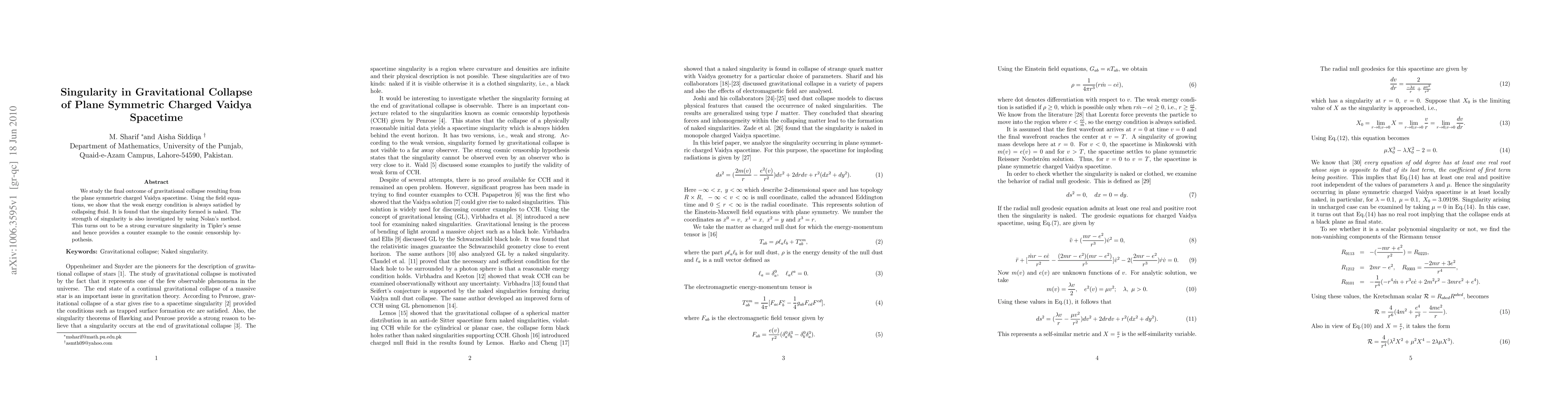 This paper investigates the gravitational collapse of plane symmetric charged Vaidya spacetime, demonstrating that the weak energy condition is upheld by the collapsing fluid. It reveals a naked singularity, classified as a strong curvature singularity, thus challenging the cosmic censorship hypothesis.