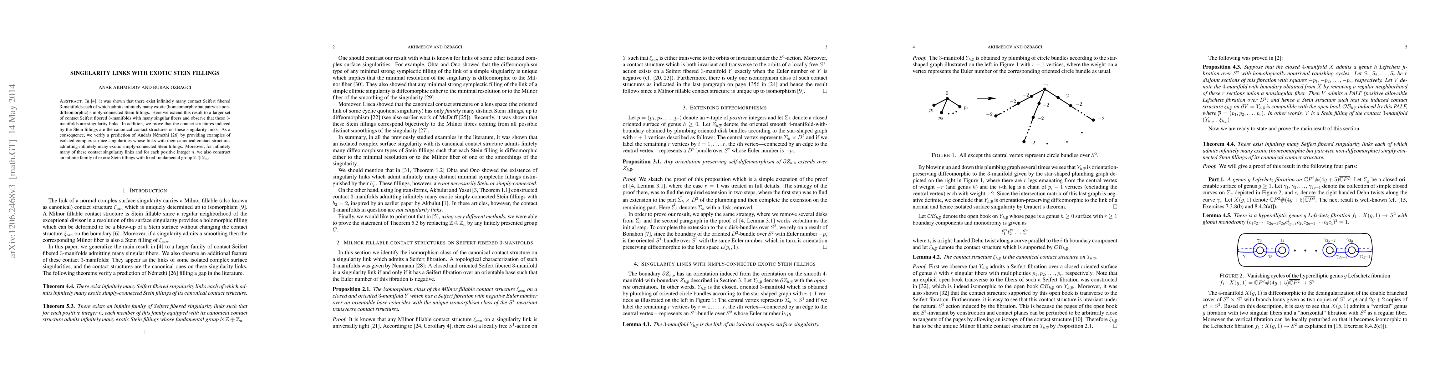 In a recent paper of Akhmedov, Etnyre, Mark and Smith, it was shown that there exist infinitely many contact Seifert fibered 3-manifolds each of which admits infinitely many exotic (homeomorphic but pairwise non-diffeomorphic) simply-connected Stein fillings. Here we extend this result to a larger set of contact Seifert fibered 3-manifolds with many singular fibers and observe that these 3-manifolds are singularity links. In addition, we prove that the contact structures induced by the Stein fillings are the canonical contact structures on these singularity links. As a consequence, we verify a prediction of Andras Nemethi by providing examples of isolated complex surface singularities whose links with their canonical contact structures admitting infinitely many exotic simply-connected Stein fillings. Moreover, for infinitely many of these contact singularity links and for each positive integer n, we also construct an infinite family of exotic Stein fillings with fixed fundamental group $\mathbb{Z} \oplus \mathbb{Z}_n$.