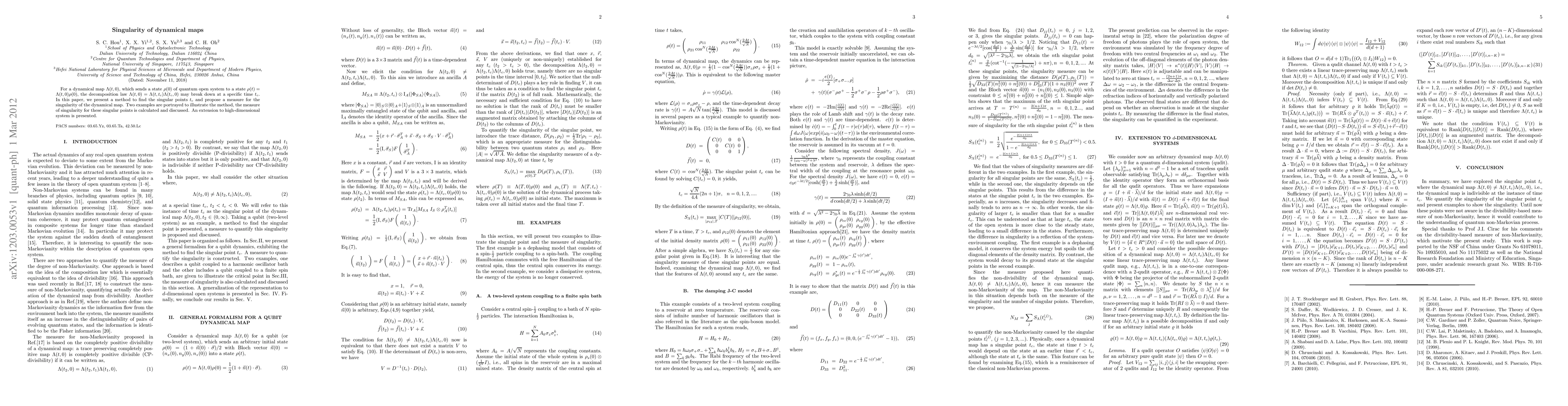 Researchers develop a method to identify singular points in dynamical maps where decomposition breaks down, proposing a measure for singularity that can help understand quantum open system behavior.