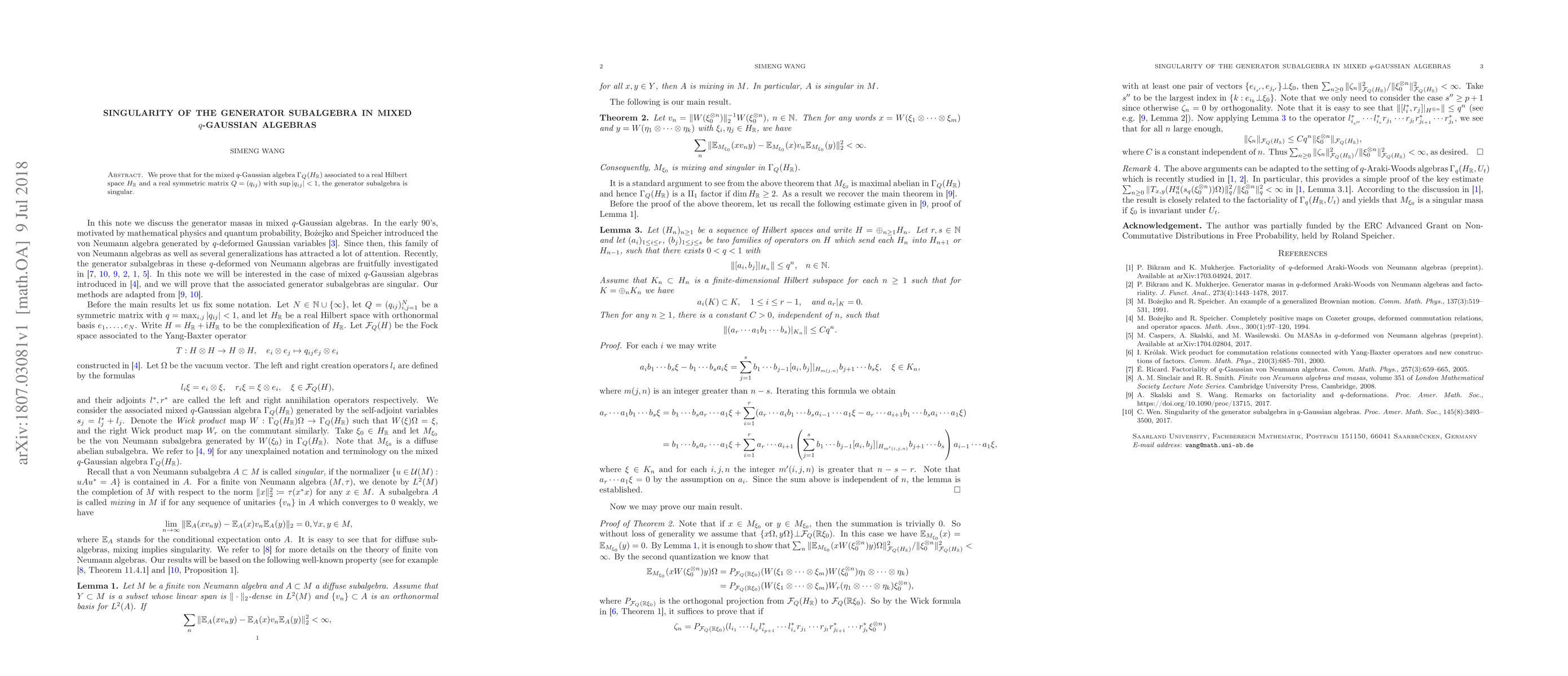 We prove that for the mixed $q$-Gaussian algebra $\Gamma_{Q}(H_{\mathbb{R}})$ associated to a real Hilbert space $H_{\mathbb{R}}$ and a real symmetric matrix $Q=(q_{ij})$ with $\sup|q_{ij}|<1$, the generator subalgebra is singular.
