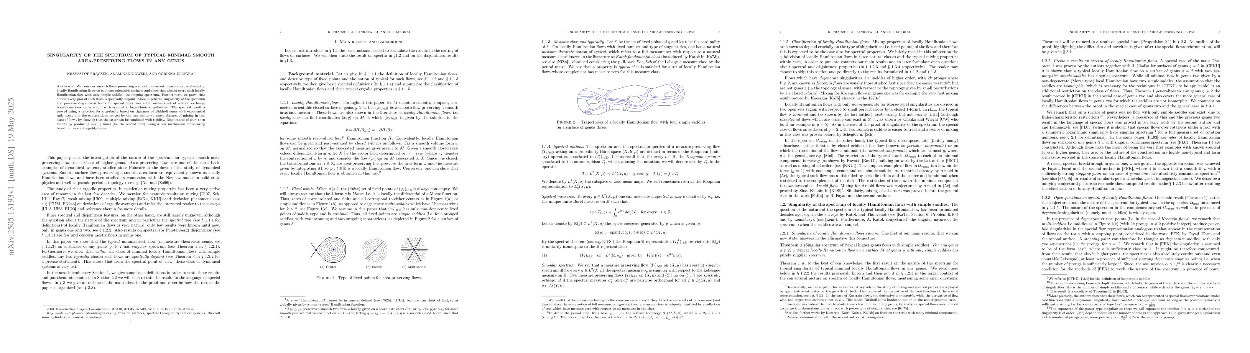 A research paper proves that almost every smooth flow preserving a smooth invariant measure on compact orientable surfaces has a singular spectrum, with spectrally disjoint flows being the exception for interval exchange transformations.