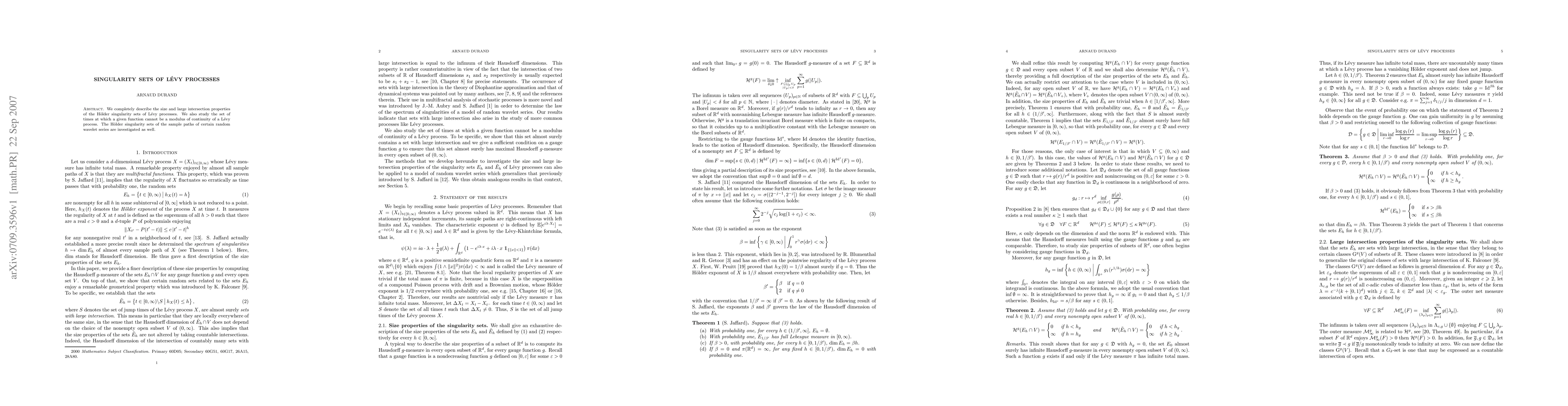 This paper thoroughly characterizes the size and intersection properties of Holder singularity sets in Levy processes, and examines the times where a function cannot serve as a modulus of continuity for these processes. It also investigates the singularity sets of sample paths in random wavelet series.