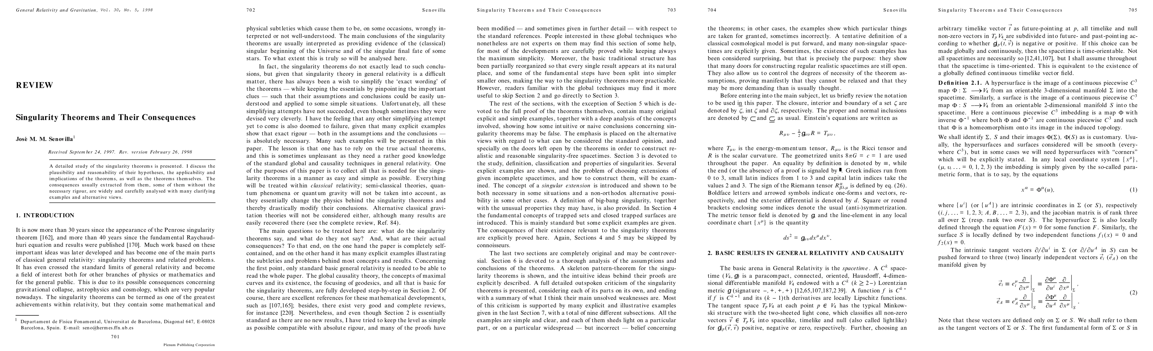 This is a 20-year old review on singularities and singularity theorems. The main reason to submit it now is -apart from increasing its availability- to correct a very strange error that appears in the journal's online version: it contains wrong headers and footers in its 1st page. This has led to many wrong citations, and to some confusion. The pdf file here contains the right information. ORIGINAL ABSTRACT: A detailed study of the singularity theorems is presented. I discuss the plausibility and reasonability of their hypotheses, the applicability and implications of the theorems, as well as the theorems themselves. The consequences usually extracted from them, some of them without the necessary rigour, are widely and carefully analysed with many clarifying examples and alternative views.