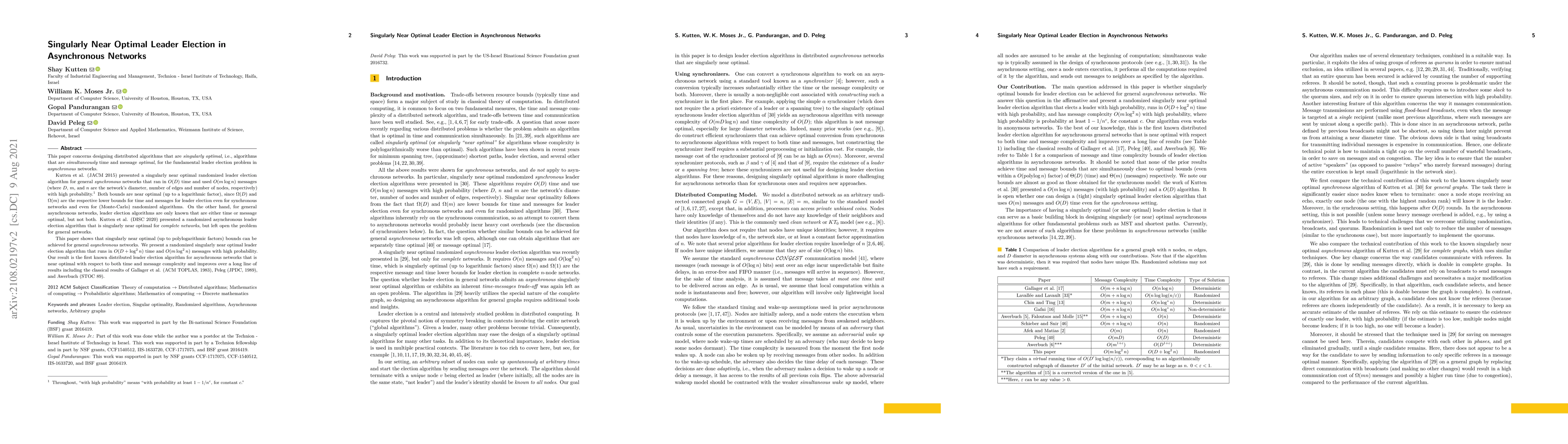 This work addresses the challenges of leader election in asynchronous networks, which has significant implications for distributed systems and network protocols.