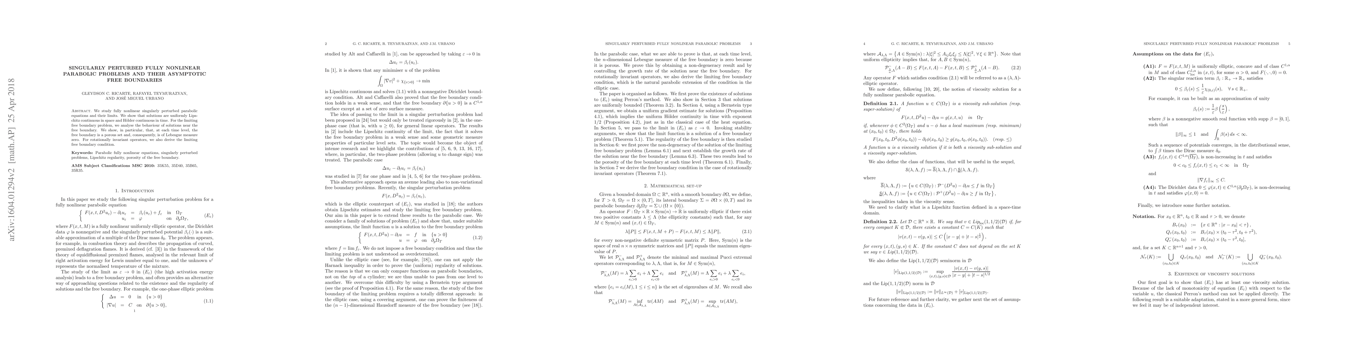 This paper investigates fully nonlinear singularly perturbed parabolic equations, demonstrating uniform Lipschitz continuity in space and Hölder continuity in time. It further analyzes the limiting free boundary, showing it is a porous set of Lebesgue measure zero, and derives the limiting free boundary condition for rotationally invariant operators.