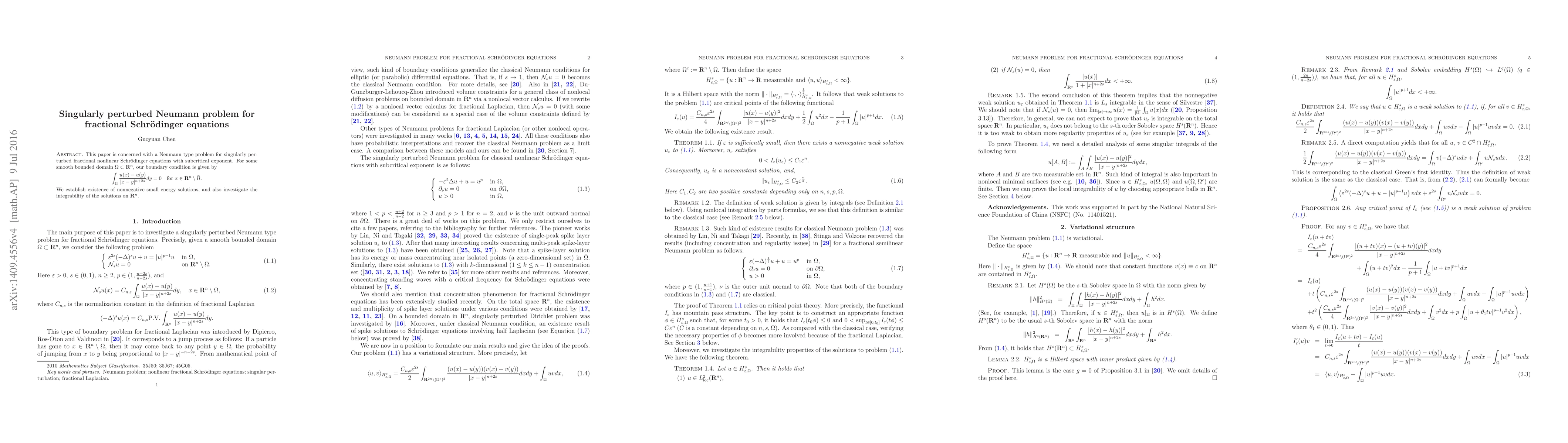 This paper addresses a Neumann problem for singularly perturbed fractional nonlinear Schrödinger equations with subcritical exponent. It establishes the existence of nonnegative small energy solutions and examines their integrability across $\mathbf R^n$.