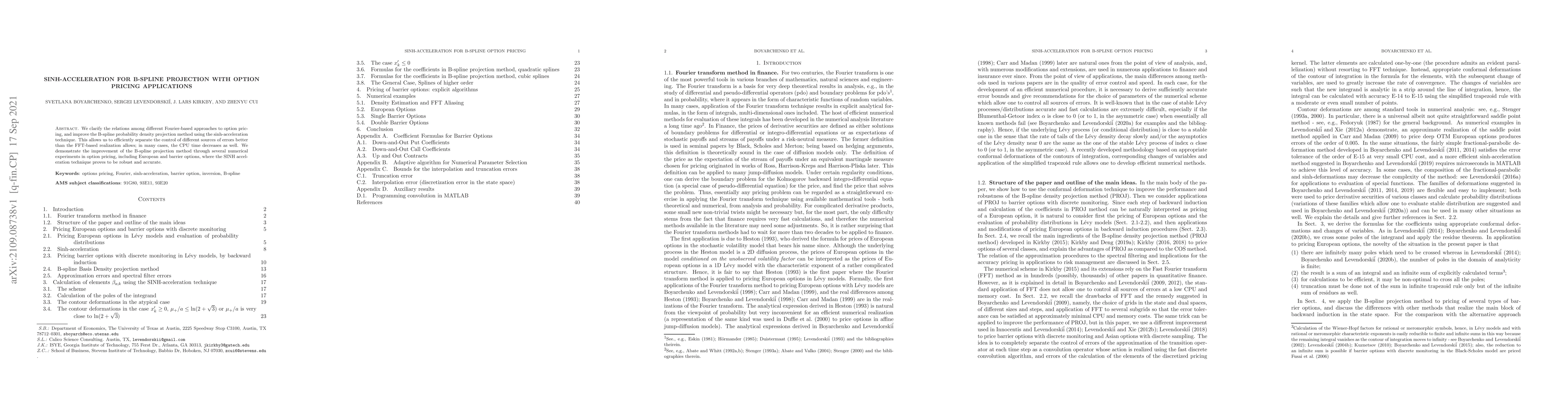 We clarify the relations among different Fourier-based approaches to option pricing, and improve the B-spline probability density projection method using the sinh-acceleration technique. This allows us to efficiently separate the control of different sources of errors better than the FFT-based realization allows; in many cases, the CPU time decreases as well. We demonstrate the improvement of the B-spline projection method through several numerical experiments in option pricing, including European and barrier options, where the SINH acceleration technique proves to be robust and accurate.