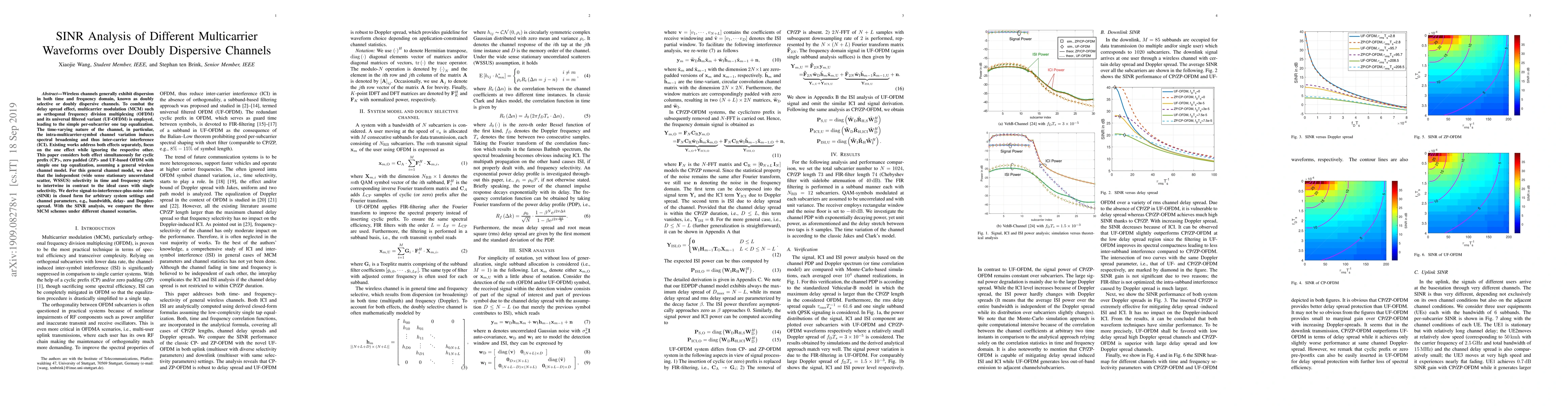 The paper analyzes SINR of CP-OFDM, ZP-OFDM, and UF-OFDM over doubly dispersive channels using a general channel model, deriving closed-form expressions for SINR considering both time and frequency selectivity simultaneously.