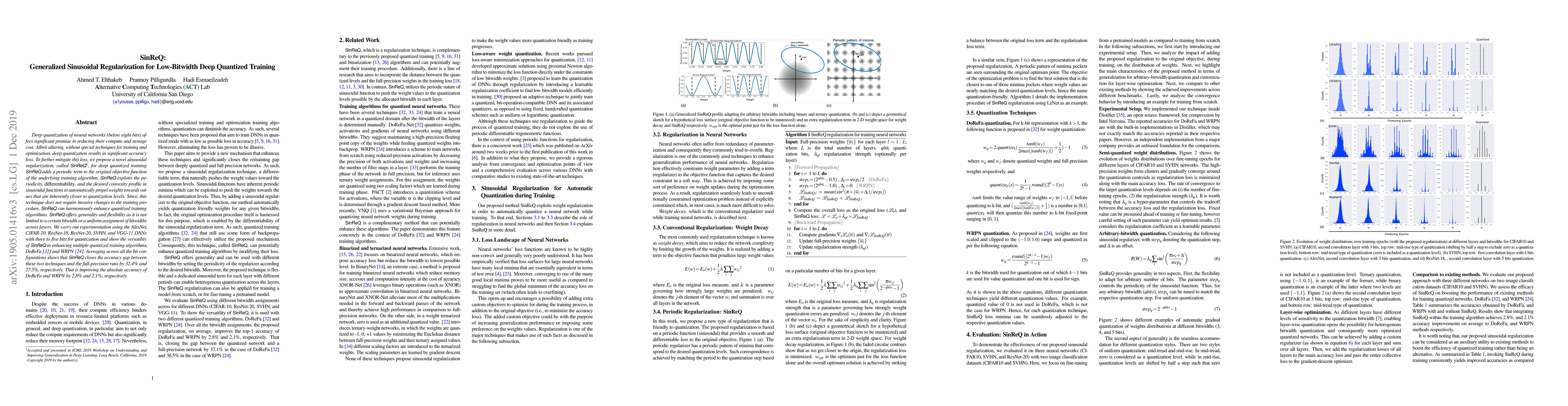 SinReQ introduces a sinusoidal regularization technique to mitigate accuracy loss during low-bitwidth deep quantized training, enhancing multiple quantization methods without invasive changes. Experiments show SinReQ closes the accuracy gap by 32.4% and 27.5% compared to full-precision runs, improving absolute accuracy by 2.8% and 2.1%, respectively.
