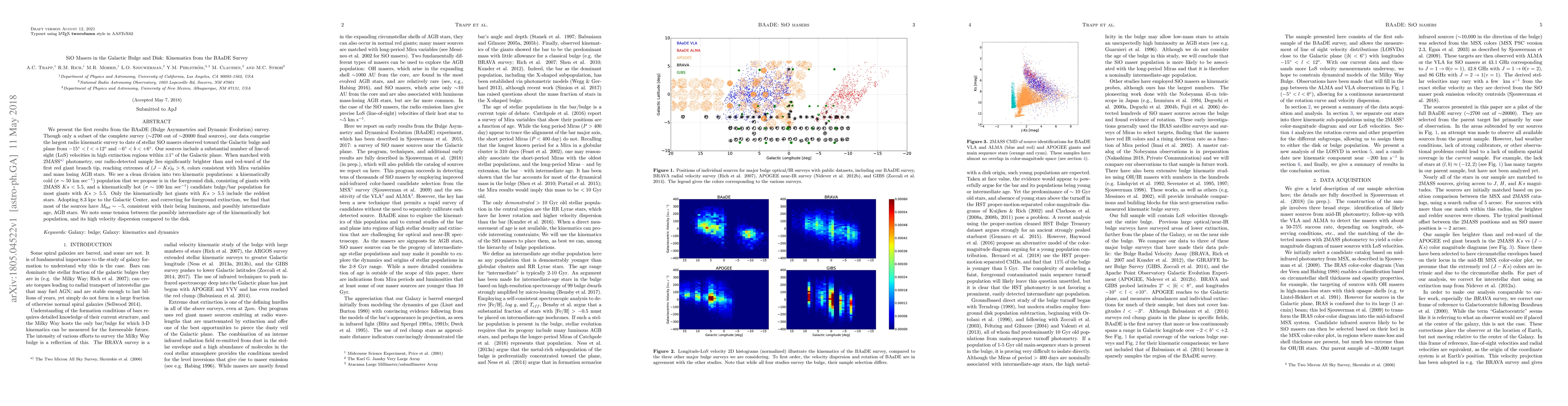 This paper reports initial findings from the BAaDE survey, detailing the largest radio kinematic survey of SiO masers in the Galactic Bulge and Disk. The study identifies two distinct kinematic populations: a cold foreground disk population and a hot candidate bulge/bar population, suggesting the presence of luminous, intermediate age AGB stars.