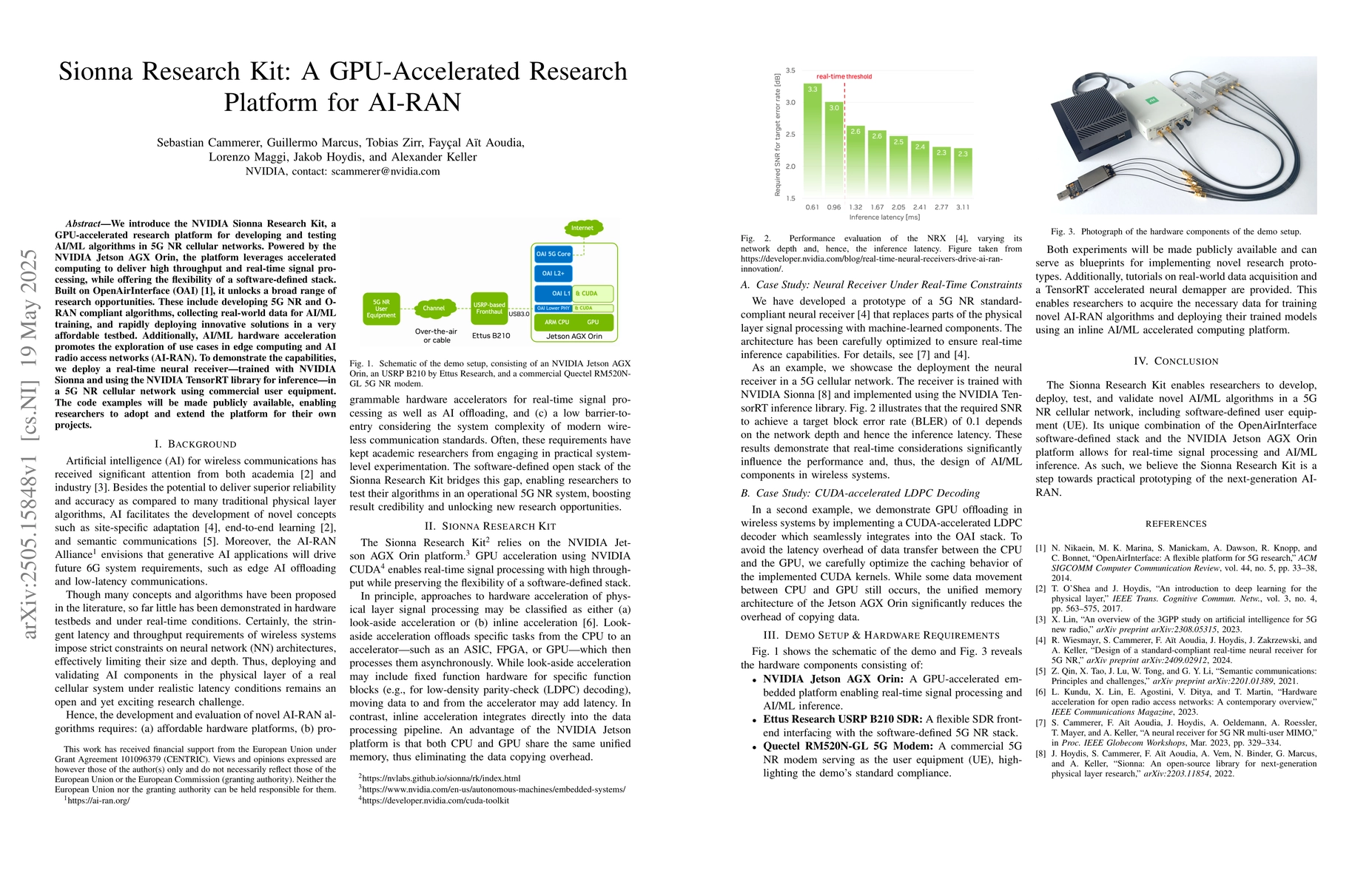 The NVIDIA Sionna Research Kit, a GPU-accelerated platform for AI/ML in 5G NR networks, offering high-throughput real-time signal processing and a software-defined stack.