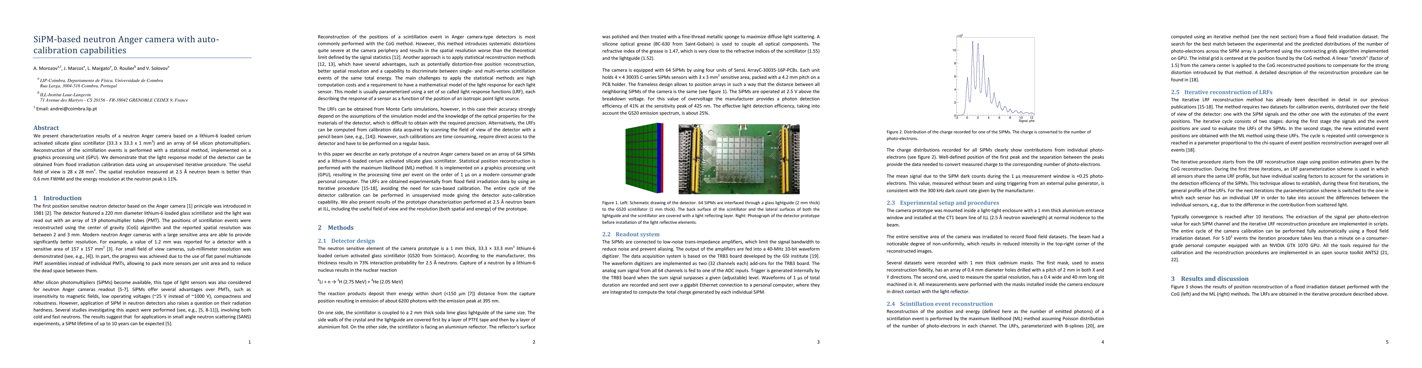 This paper describes a neutron Anger camera utilizing a scintillator and an array of silicon photomultipliers, achieving a spatial resolution of better than 0.6 mm FWHM and an energy resolution of 11%. The system includes an auto-calibration feature derived from flood irradiation data.