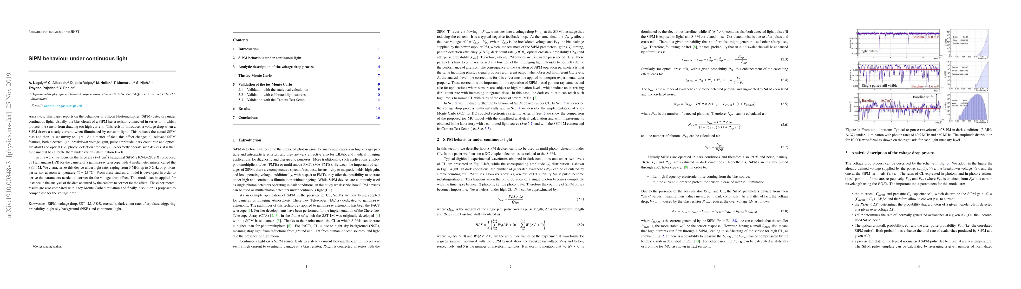 Researchers studied Silicon Photomultiplier detectors under continuous light to understand how a resistor affects their performance, proposing a model to correct for the resulting voltage drop.