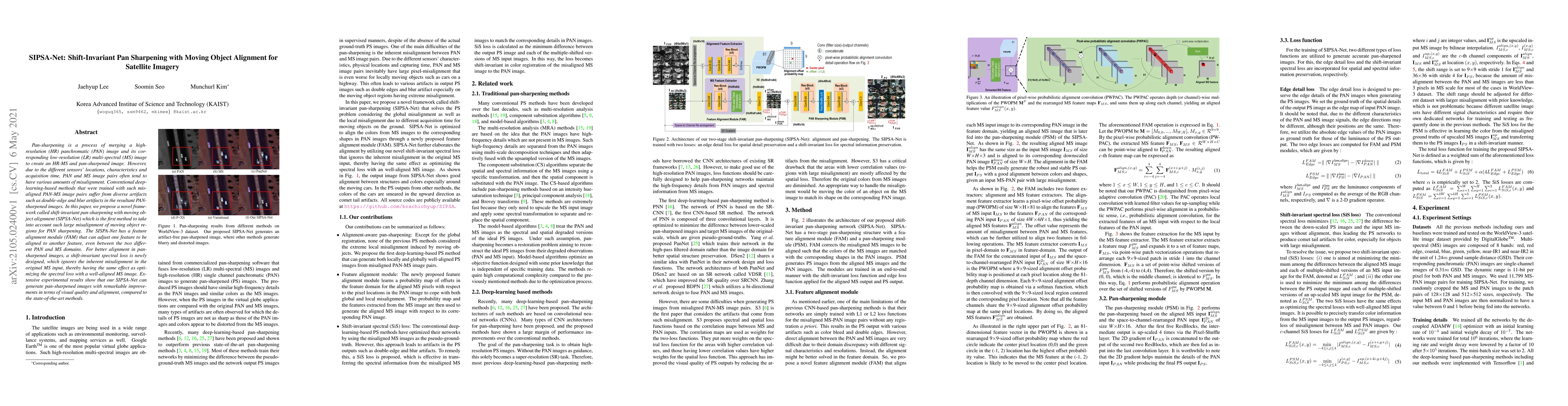 A new deep-learning method called SIPSA-Net improves pan-sharpening images of satellite photos by accounting for misalignment between different sensor types, resulting in better visual quality and alignment compared to existing methods.