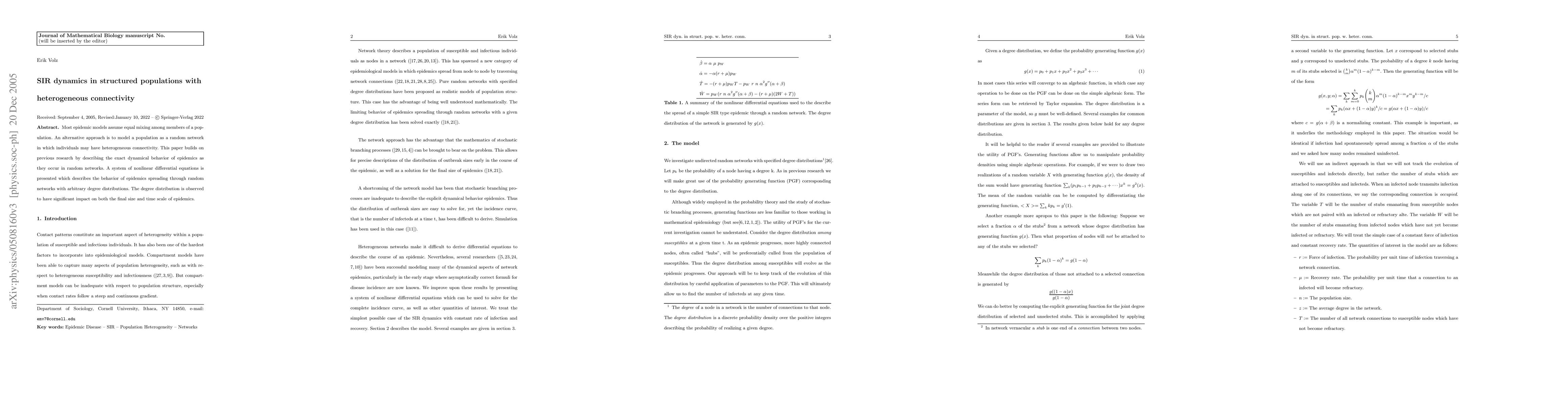 Most epidemic models assume equal mixing among members of a population. An alternative approach is to model a population as random network in which individuals may have heterogeneous connectivity. This paper builds on previous research by describing the exact dynamical behavior of epidemics as they occur in random networks. A system of nonlinear differential equations is presented which describes the behavior of epidemics spreading through random networks with arbitrary degree distributions. The degree distribution is observed to have significant impact on both the final size and time scale of epidemics.
