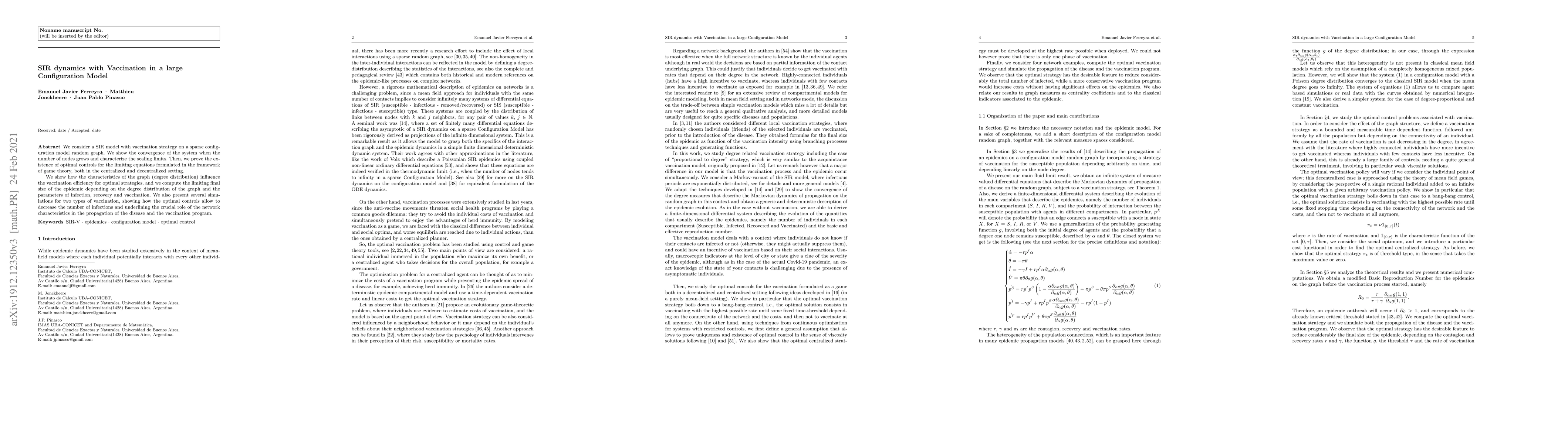 This paper studies a SIR model with vaccination on a large sparse configuration model graph, analyzing its convergence and scaling limits. It demonstrates the existence of optimal vaccination controls in both centralized and decentralized frameworks, highlighting the impact of the graph's degree distribution on vaccination efficiency and the final size of the epidemic.
