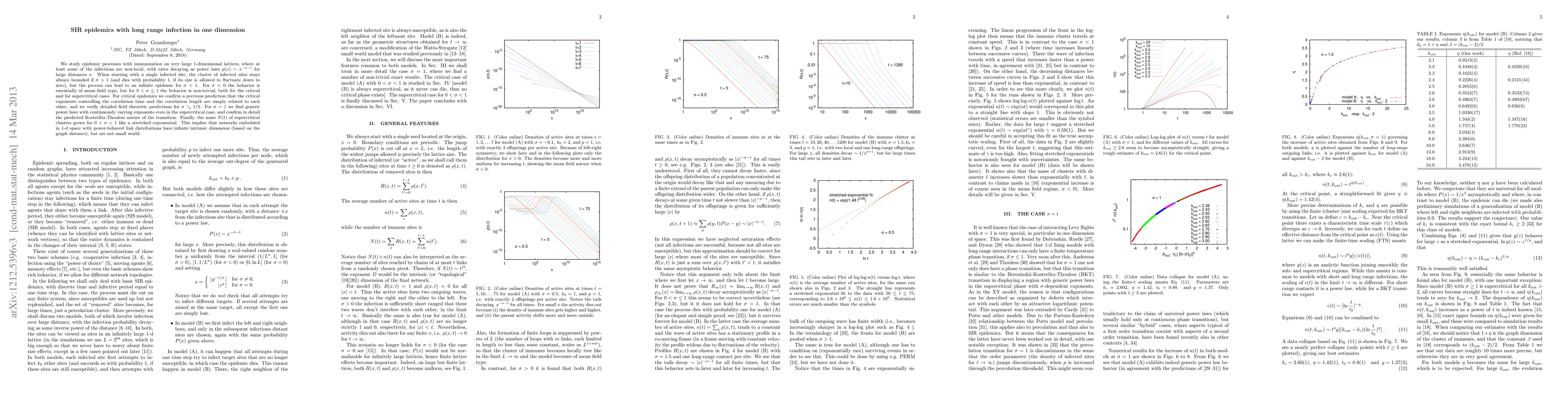 We study epidemic processes with immunization on very large 1-dimensional lattices, where at least some of the infections are non-local, with rates decaying as power laws p(x) ~ x^{-sigma-1} for large distances x. When starting with a single infected site, the cluster of infected sites stays always bounded if $\sigma >1$ (and dies with probability 1, of its size is allowed to fluctuate down to zero), but the process can lead to an infinite epidemic for sigma <1. For sigma <0 the behavior is essentially of mean field type, but for 0 < sigma <= 1 the behavior is non-trivial, both for the critical and for supercritical cases. For critical epidemics we confirm a previous prediction that the critical exponents controlling the correlation time and the correlation length are simply related to each other, and we verify detailed field theoretic predictions for sigma --> 1/3. For sigma = 1 we find generic power laws with continuously varying exponents even in the supercritical case, and confirm in detail the predicted Kosterlitz-Thouless nature of the transition. Finally, the mass N(t) of supercritical clusters seems to grow for 0 < sigma < 1 like a stretched exponential. The latter implies that networks embedded in 1-d space with power-behaved link distributions have infinite intrinsic dimension (based on the graph distance), but are not small world.