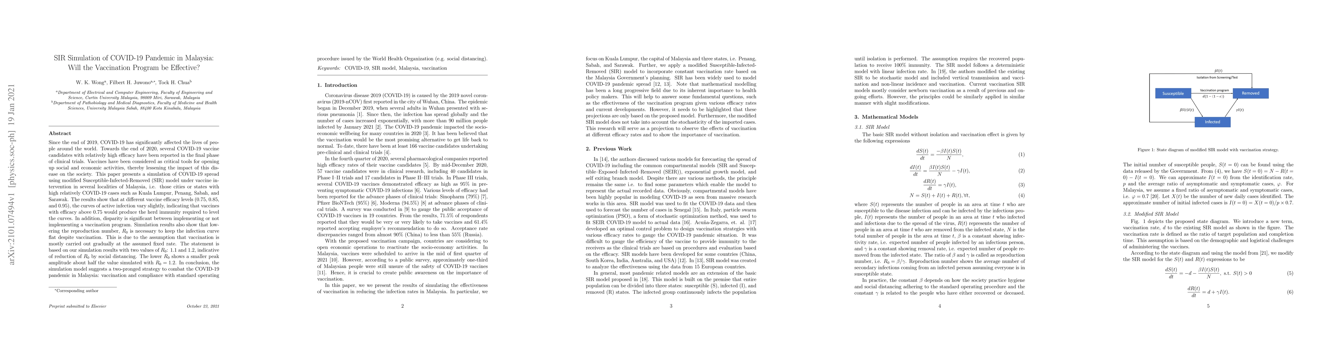 A simulation model in Malaysia shows that vaccination with efficacy above 0.75 can achieve herd immunity and reduce the spread of COVID-19, alongside social distancing measures.