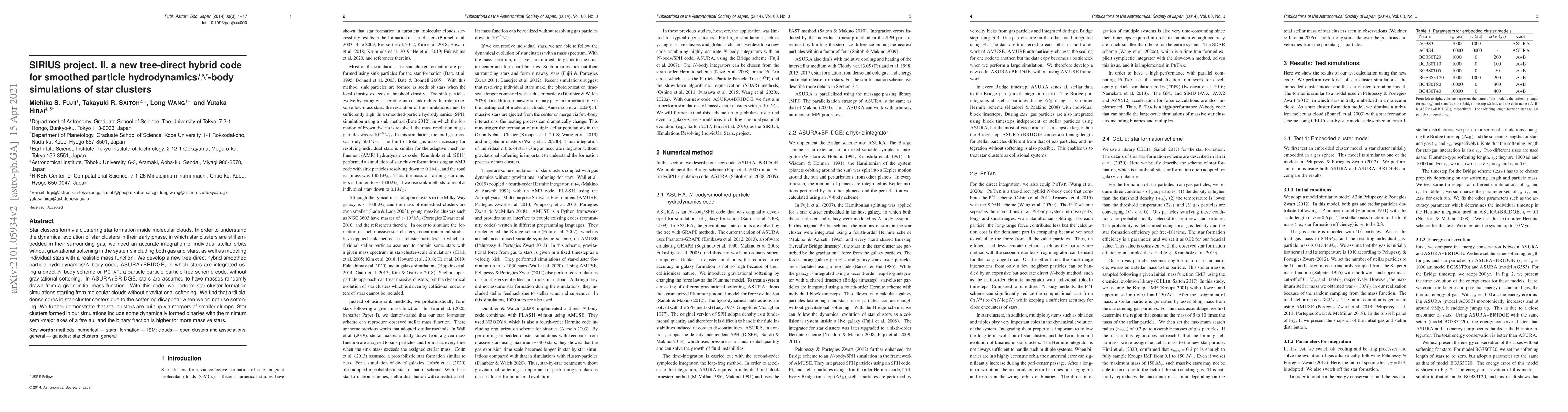 The SIRIUS project II introduces a new hybrid code, ASURA+BRIDGE, for simulating star clusters without gravitational softening, revealing that star clusters form via mergers of smaller clumps and produce dynamically formed binaries with higher binary fractions among more massive stars.