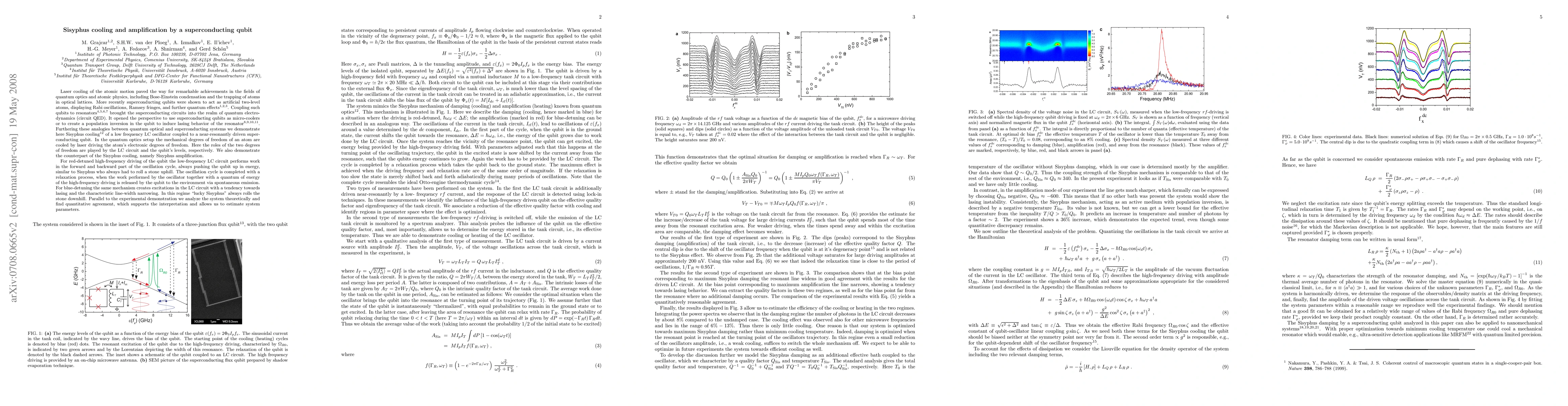 This paper demonstrates Sisyphus cooling and amplification in a superconducting qubit coupled to a low-frequency LC oscillator, analogous to cooling in quantum optics. Theoretical analysis supports the experimental results, providing estimates for system parameters.
