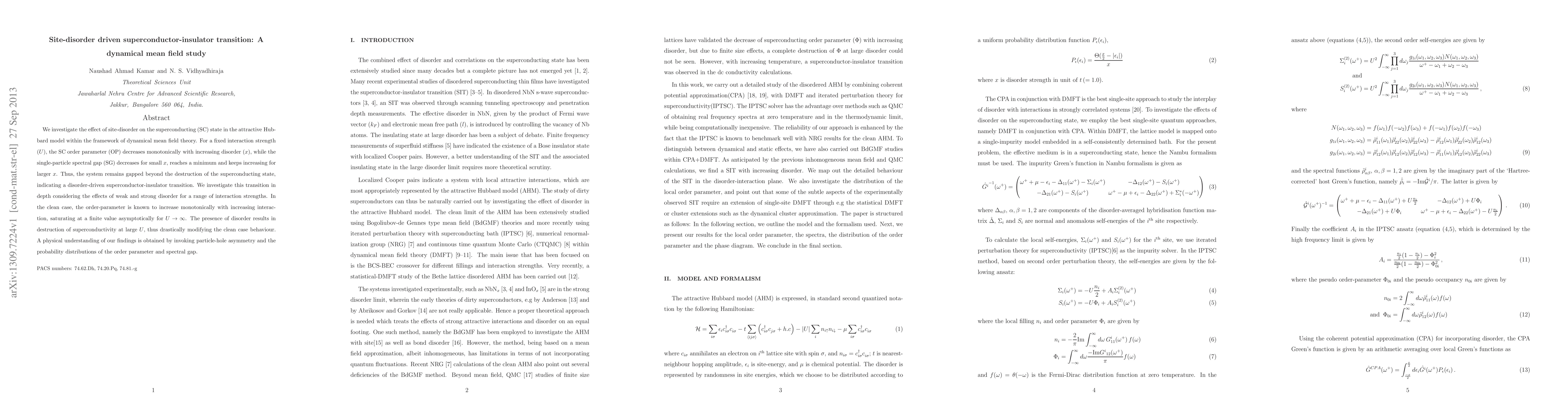 This study explores how site-disorder impacts superconductivity in the attractive Hubbard model using dynamical mean field theory, revealing a superconductor-insulator transition driven by disorder. The superconducting order parameter decreases with increasing disorder, while the spectral gap first decreases then increases, indicating a transition that remains gapped.